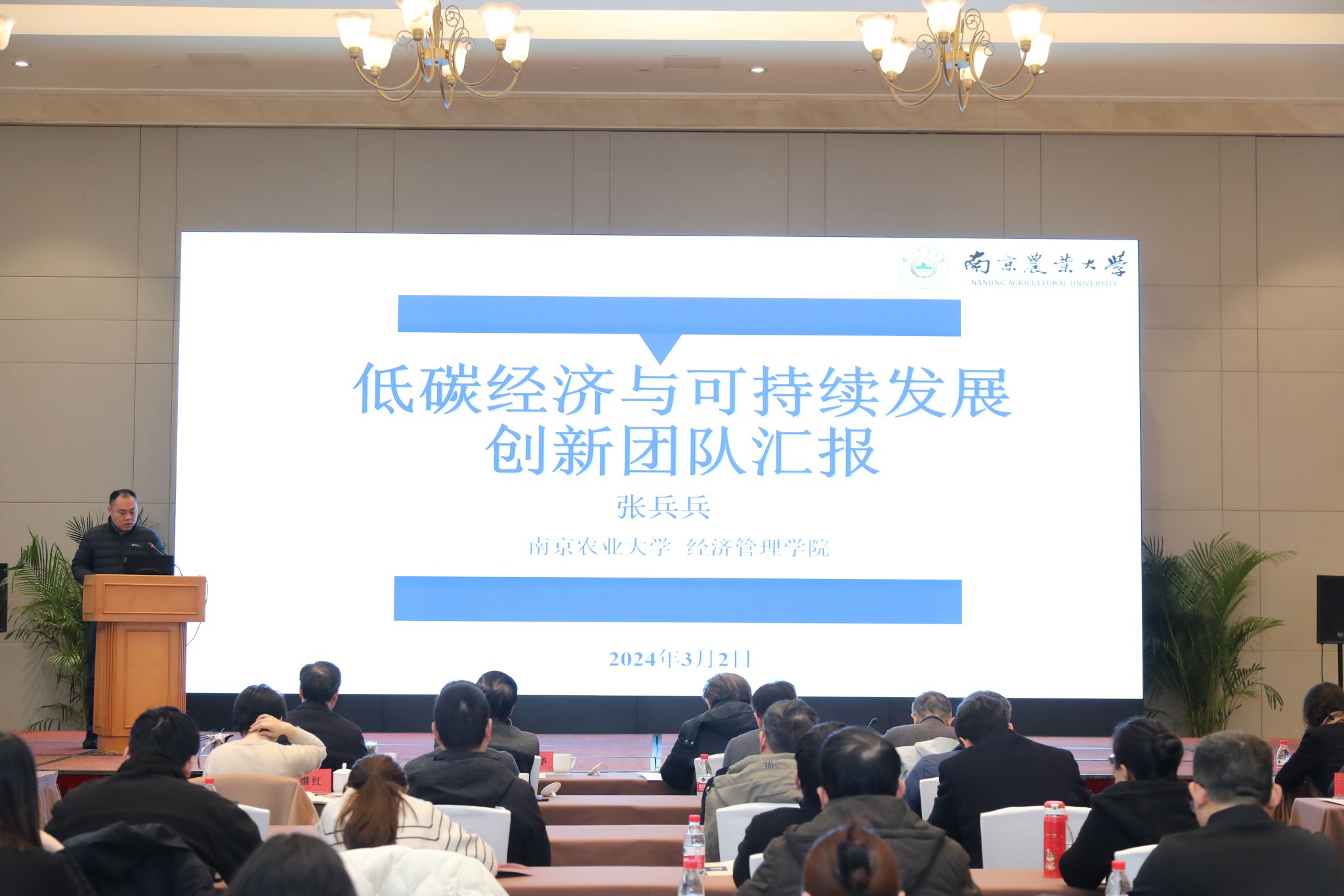 张兵兵教授代表低碳经济与可持续发展创新团队作汇报。他从团队过去一年成果回顾、合作交流情况、2024年工作计划等方面,对团队工作进行总结与展望。2024年,低碳经济与可持续发展创新团队将依托学院学科优势,结合自然学科发展,促进环境经济学与农业可持续发展交叉融合,探索环境经济与现代农业的关联。