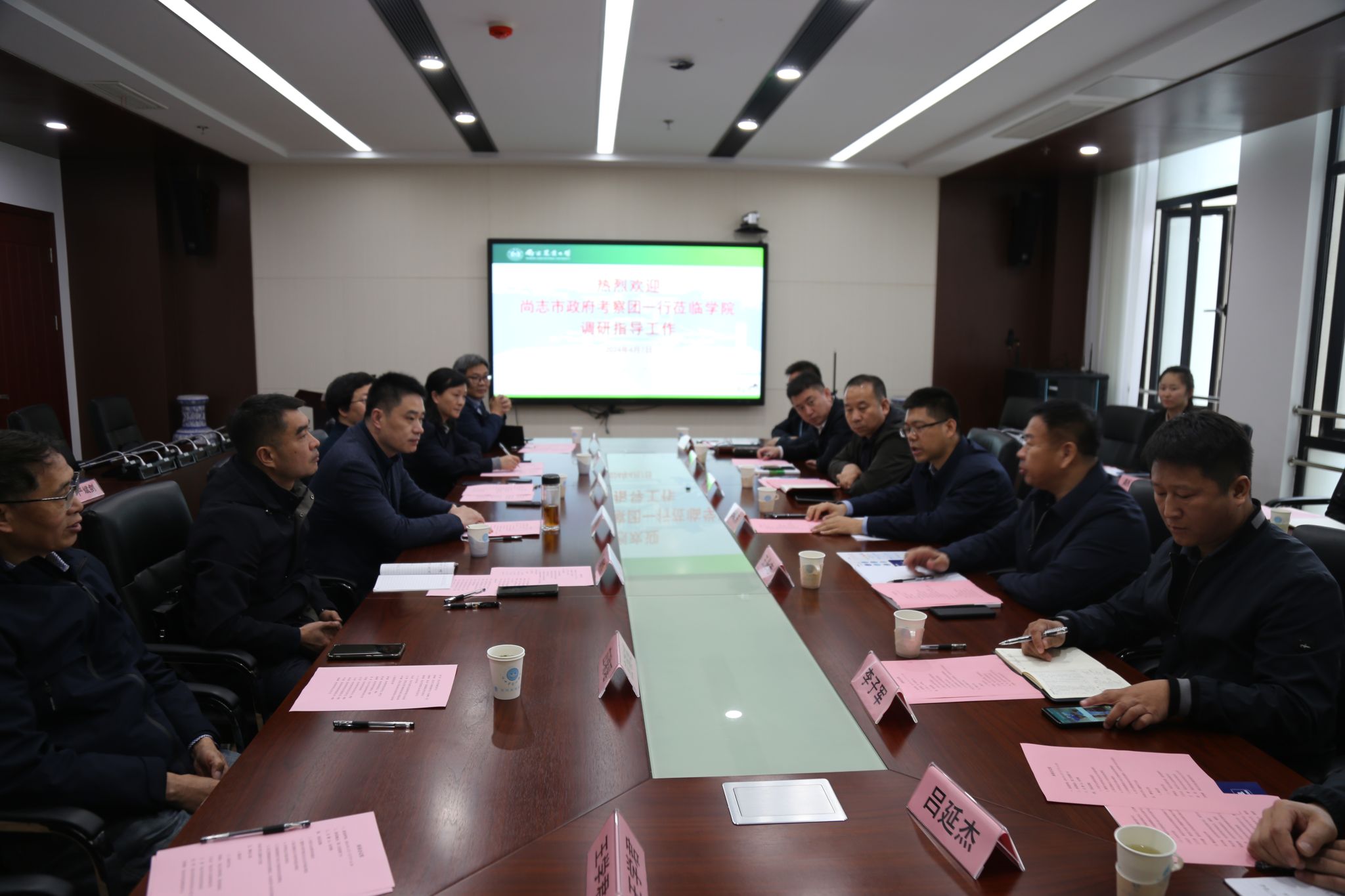 孙雪峰、徐志刚对尚志市领导一行的到来表示热烈欢迎。孙雪峰简要介绍了学校基本情况以及服务地方经济发展的经验做法。徐志刚从学院历史发展、师资力量、科研成果、人才培养、对外合作与交流等方面介绍了学院发展情况及成效。他表示双方未来在农村改革咨询、乡村干部培训、大学生“三农”实践等方面能够资源互通、创新协作。