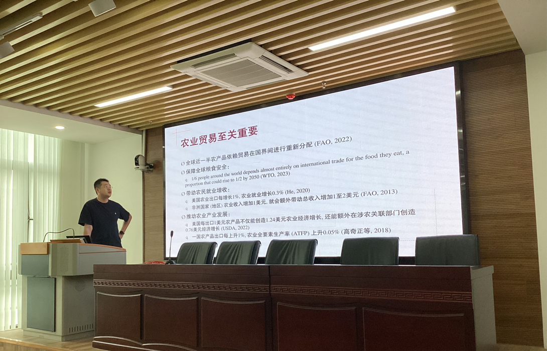本场沙龙分享教师分别来自大国食物安全与全球农业合作创新团队和农业产业链安全与农商管理创新团队,青年教师谢超平、严斌剑老师进行了学术汇报。内容分别为《Regional Governance, Quality Improvement and Agricultural Exports: evidence from China’s quality and safety demonstration zone program》、《食物价值链全球化与异质性群体膳食质量国际收敛性研究》,内容精彩纷呈、观点新锐前沿。