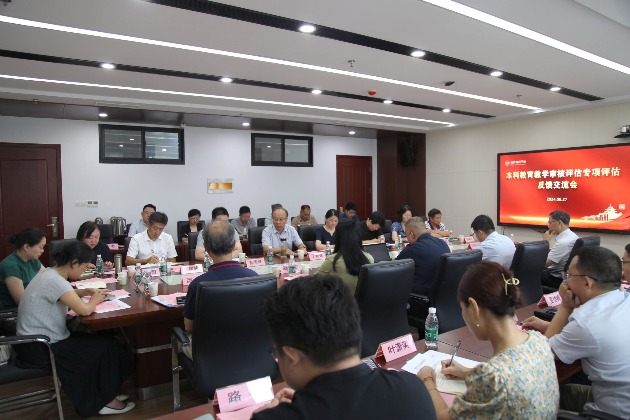 8月27日上午,437必赢会员中心教育教学审核评估专项评估反馈交流会在校顺利召开。东北农业大学教务处处长张永强,南京财经大学评估及质量监控中心、教师发展中心主任阚京华,校草业学院院长张炜、校本科教学督导缪培仁,学院应瑞瑶教授作为专家组成员出席会议。校党委常委、副校长丁艳锋,校教务处处长曹爱忠,校长办公室副主任、专项评估联络员周琨,校教材与专业建设科副科长、专项评估观察员李伟锋,学院领导班子、各专业负责人、各系系主任及本科教育教学审核评估小组的其他成员共同参加了会议。会议由院党委书记孙雪峰主持。