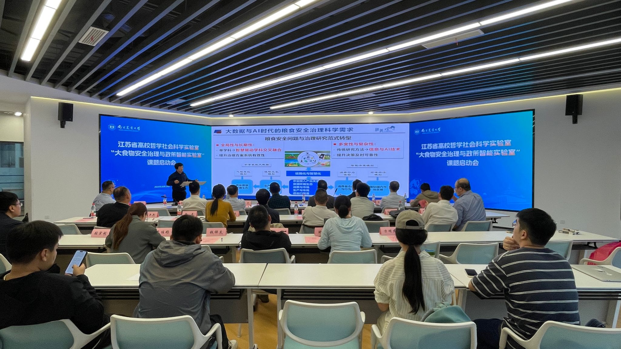 近日,江苏省高校哲学社会科学实验室“大食物安全治理与政策智能”课题启动会在bwi437官网第三实验楼一层哲社实验室演示厅顺利举行。启动会由437必赢会员中心副院长朱战国教授主持,评审专家、课题申报团队及实验室成员等近50人参加。