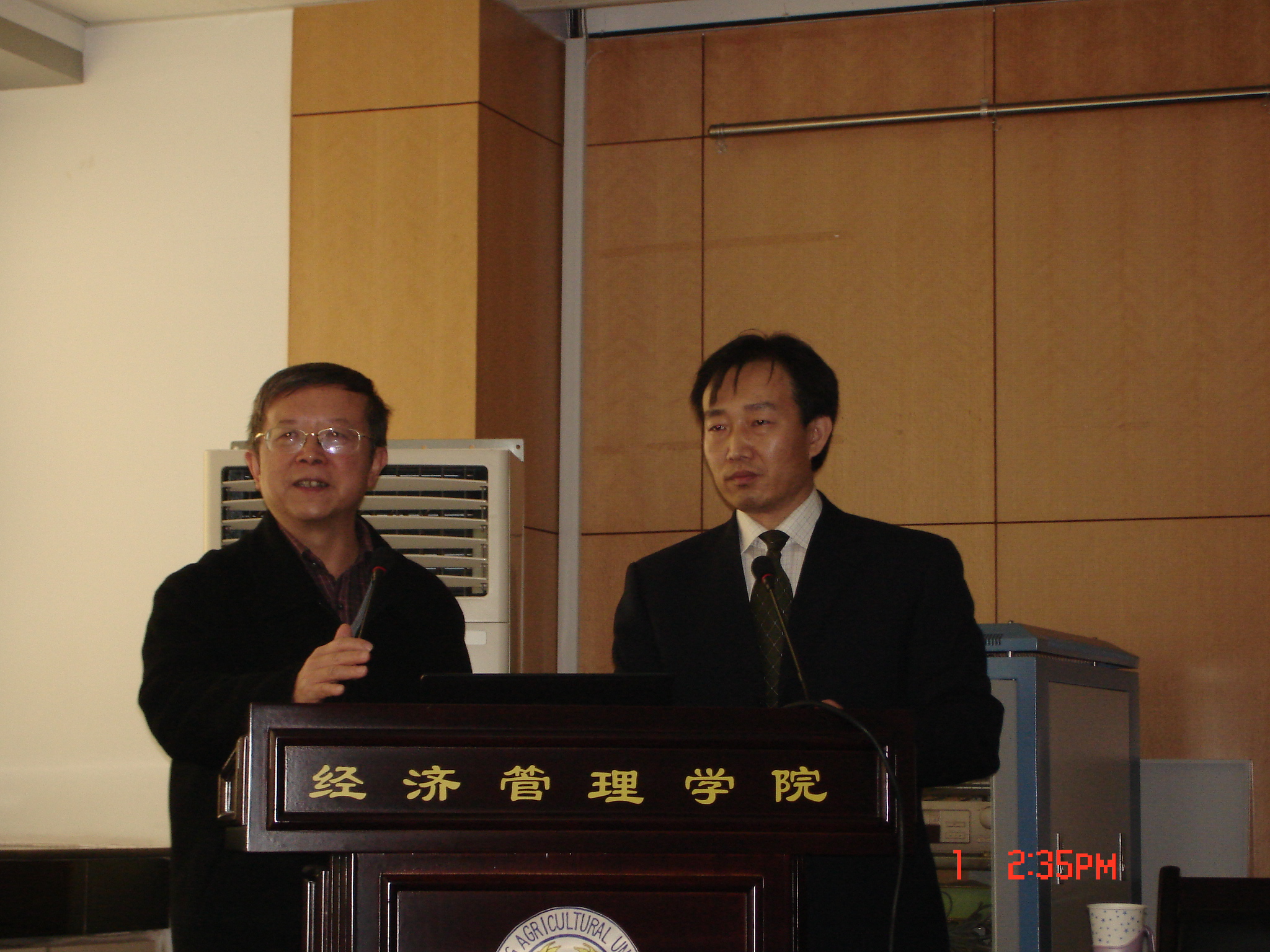 2007年12月1日,中科院农业研究所所长秦富来我校作了“食品消费的国际比较”报告,钟甫宁教授主持了报告。秦所长通过我国与英、法、美、日、韩、泰、马来西亚等7个国家的食品消费习惯等方面的比较,深刻的讲述了我国食品消费的一些特点等。报告气氛相当活跃,同学们积极提问,秦所长和钟教授都给同学们作了回答。