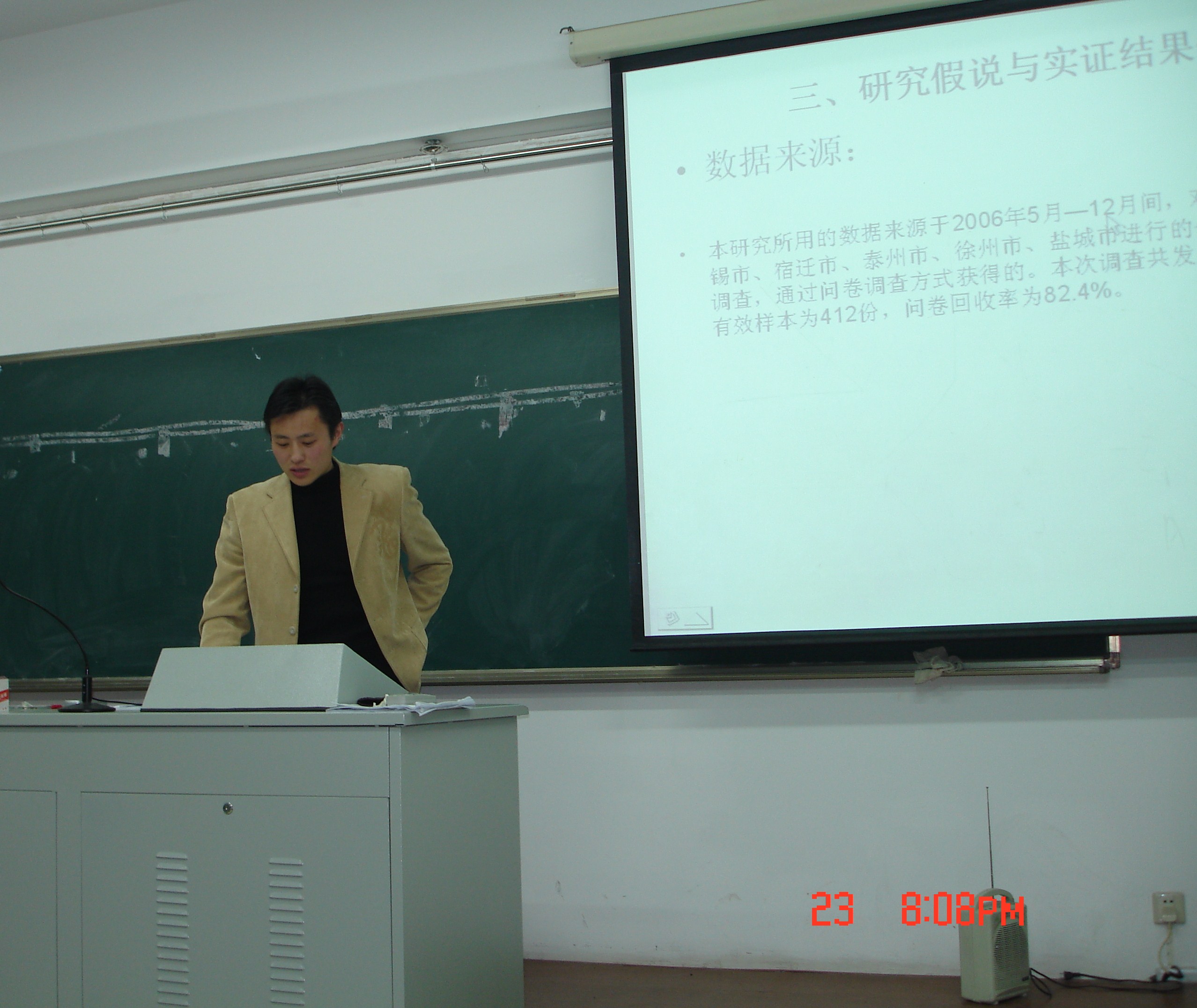 本次论坛中,首先由张龙耀博士做了题为“农村信用社扶贫小额贷款的实证研究”,潘军昌老师对他的报告做了具体中肯的点评,提出了许多有建设意义的建议,接着是展海军同学做了题为“上市公司股权分置改革效应的实证研究”的报告,周月书老师做了细致深入点评,最后是我院吕美晔博士做了题为“菜农资源禀赋对其种植行为的影响研究”的报告,刘华老师给予了精彩点评。