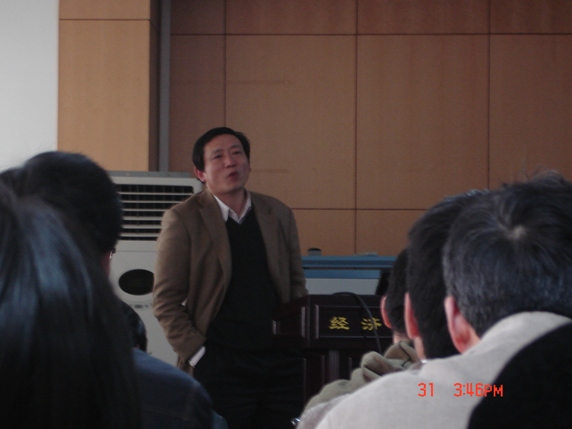 2008年3月31日(周日)下午2点,来自南京财经大学的副校长许承明教授在我院逸夫楼5045学术报告厅作了题为“流动性过剩的成因及政策的选择”的报告,报告围绕主题讲解了很多流动性的成因,以及待研究的一些问题。此次报告由褚保金老师主持,褚老师在最后做了总结。此次报告在热烈掌声中圆满结束。