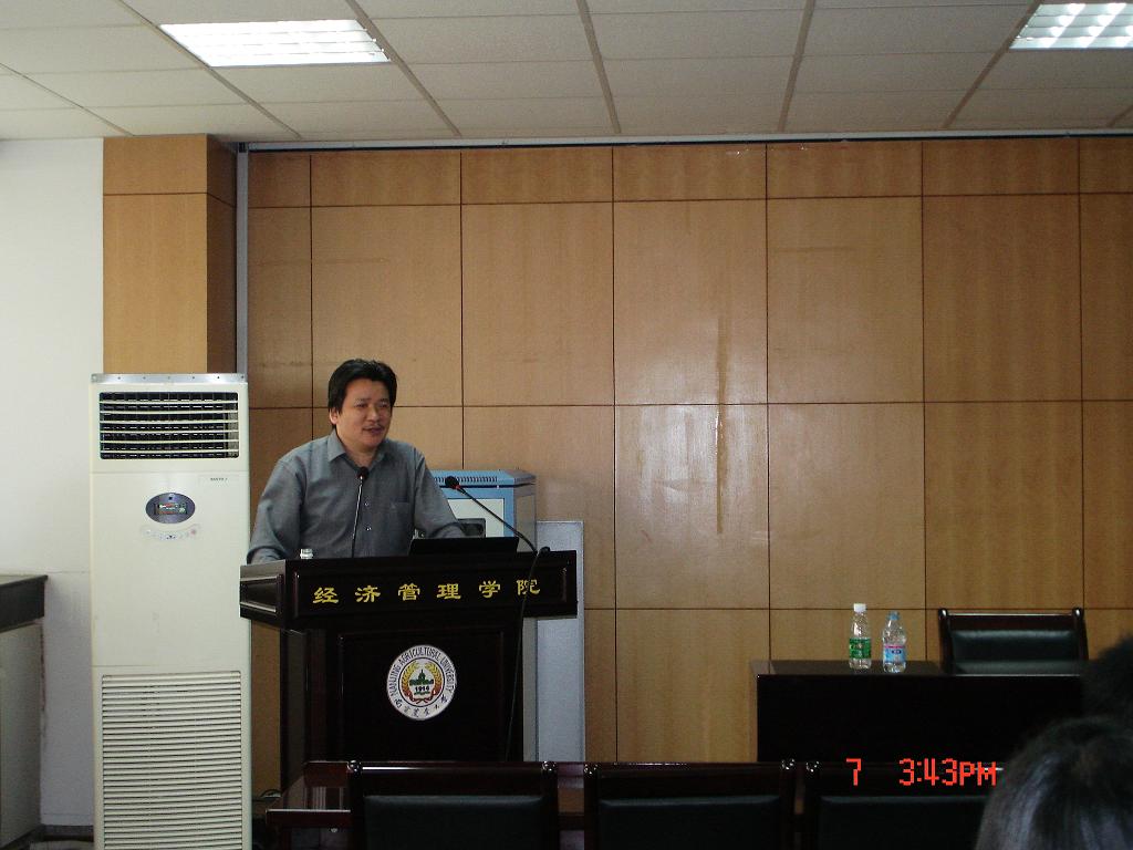 2008年5月7日下午2点,来自中国社科院财贸所的裴长洪研究员和何德旭研究员在我院逸夫楼学术报告厅作了一场学术报告会。周应恒院长参与了此次报告会,钟甫宁教授参与并主持了此次报告会。