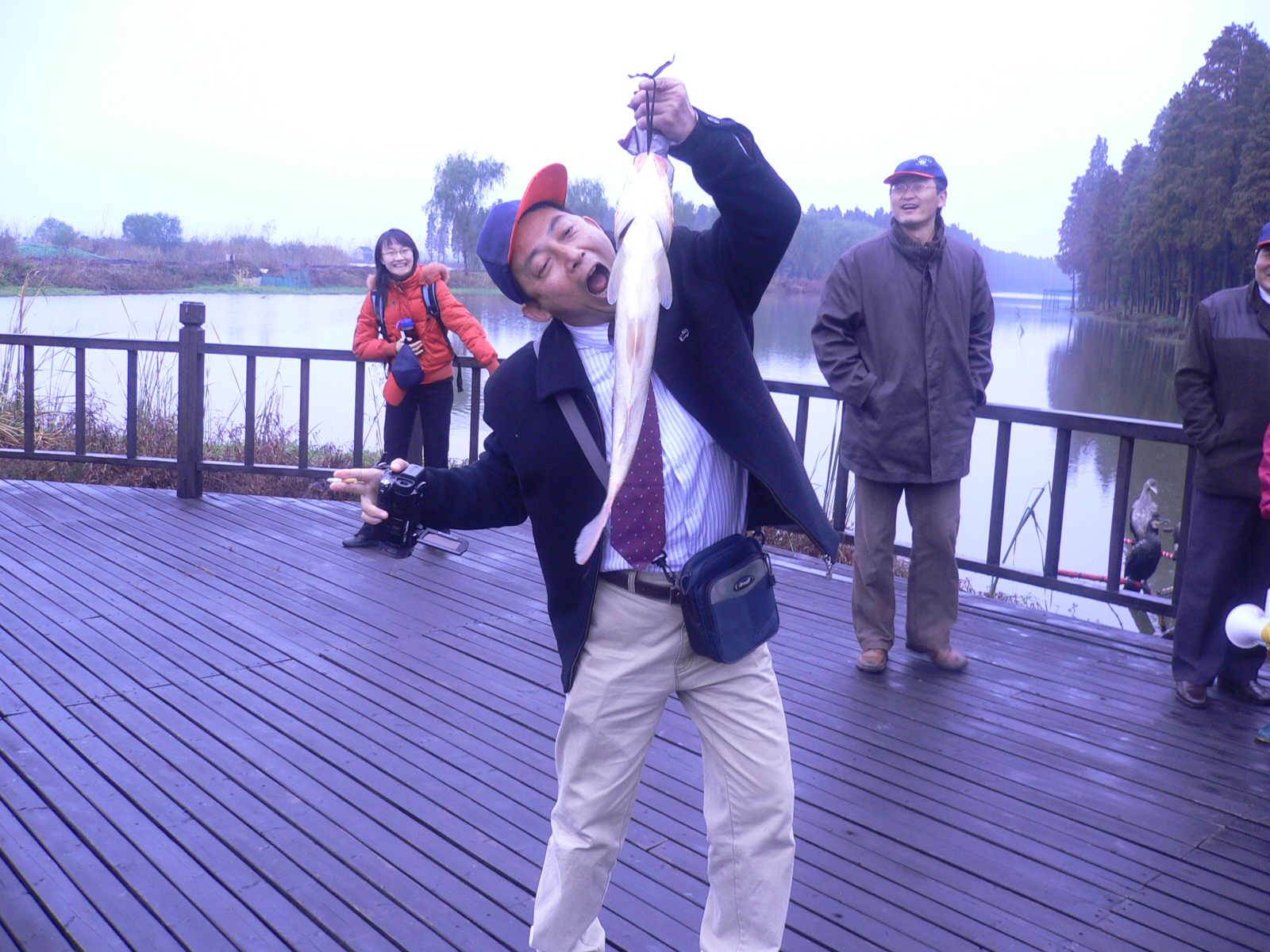 的大鱼被几只鸬鹚一同活捉。瘦弱的鸬鹚竟然密切配合,以联合作战的方式须臾间将猎物装入囊中。我们惊叹鸬鹚的神奇表演之余,渔夫向我们兜售那条被鸬鹚捉住的大活鱼,我们院办
