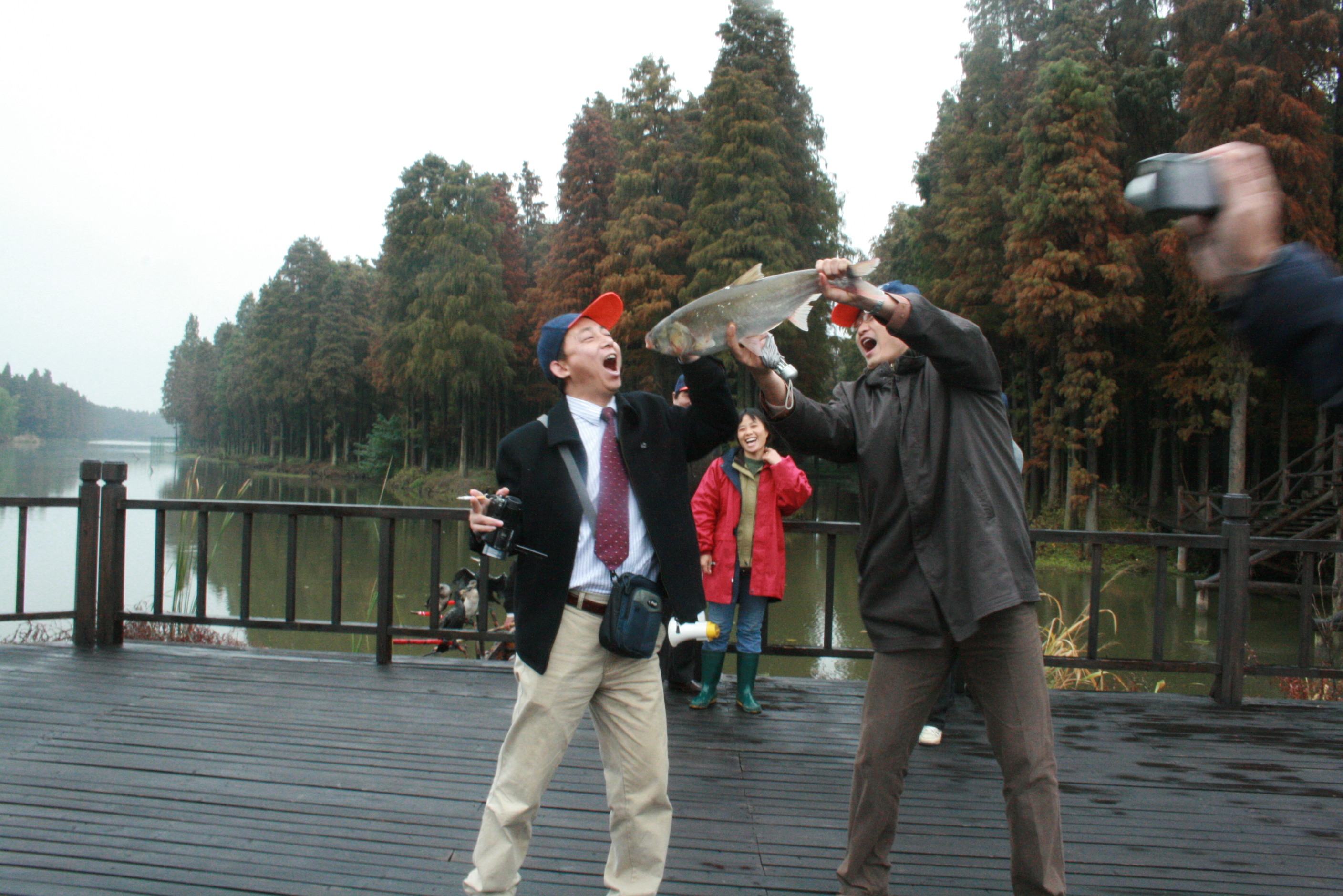 老师以低廉价格购得了这条极具纪念意义的生态大鱼。工会主席刘军带头,连同其余好事者纷纷要求与这条鱼合影留念,