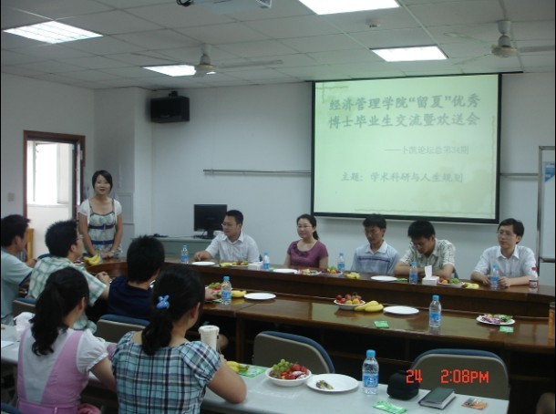 6月24日下午两点起,“留夏”优秀博士毕业生交流暨欢送会围绕学术科研和人生规划两个方面在逸夫楼5086教室如火如荼地进行了三个小时。出席的优秀博士毕业生代表有展进涛博士、刘军弟博士、周宁博士、赵文博和范子英博士,整个过程轻松愉快。通过这次交流会,他们在这个夏天给在校研究生们留下了更多的信心和更深的思考。