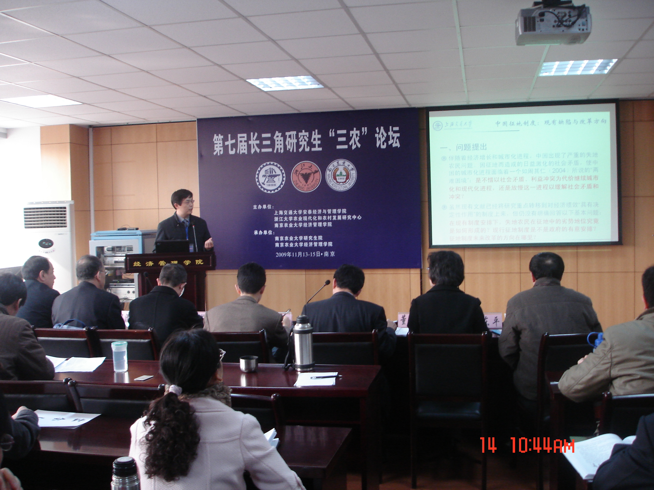 由437必赢会员中心、研究生院承办的第七届长三角论坛于2009年11月14日在437必赢会员中心学术厅如期举行。参会成员包括三位主办方,分别是上海交通大学安泰经济与管理学院、浙江大学农业现代化和农村发展研究中心、437必赢会员中心,另外参会的还有安徽农业大学、江西农业大学、福建农林大学。