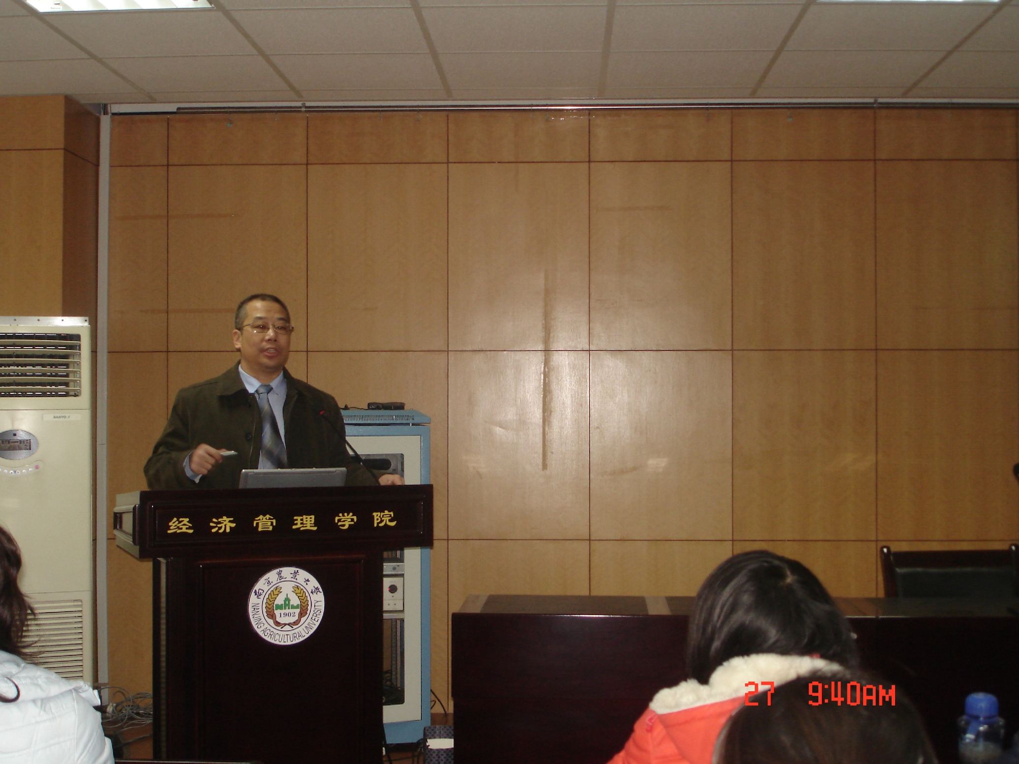 12月27日上午9:30,在经管学院学术报告厅5045,中国人民大学农业与农村发展学院孔祥智教授做了题为《土地承包关系长久不变与土地流转》的学术报告,陈东平书记主持了本次报告会。