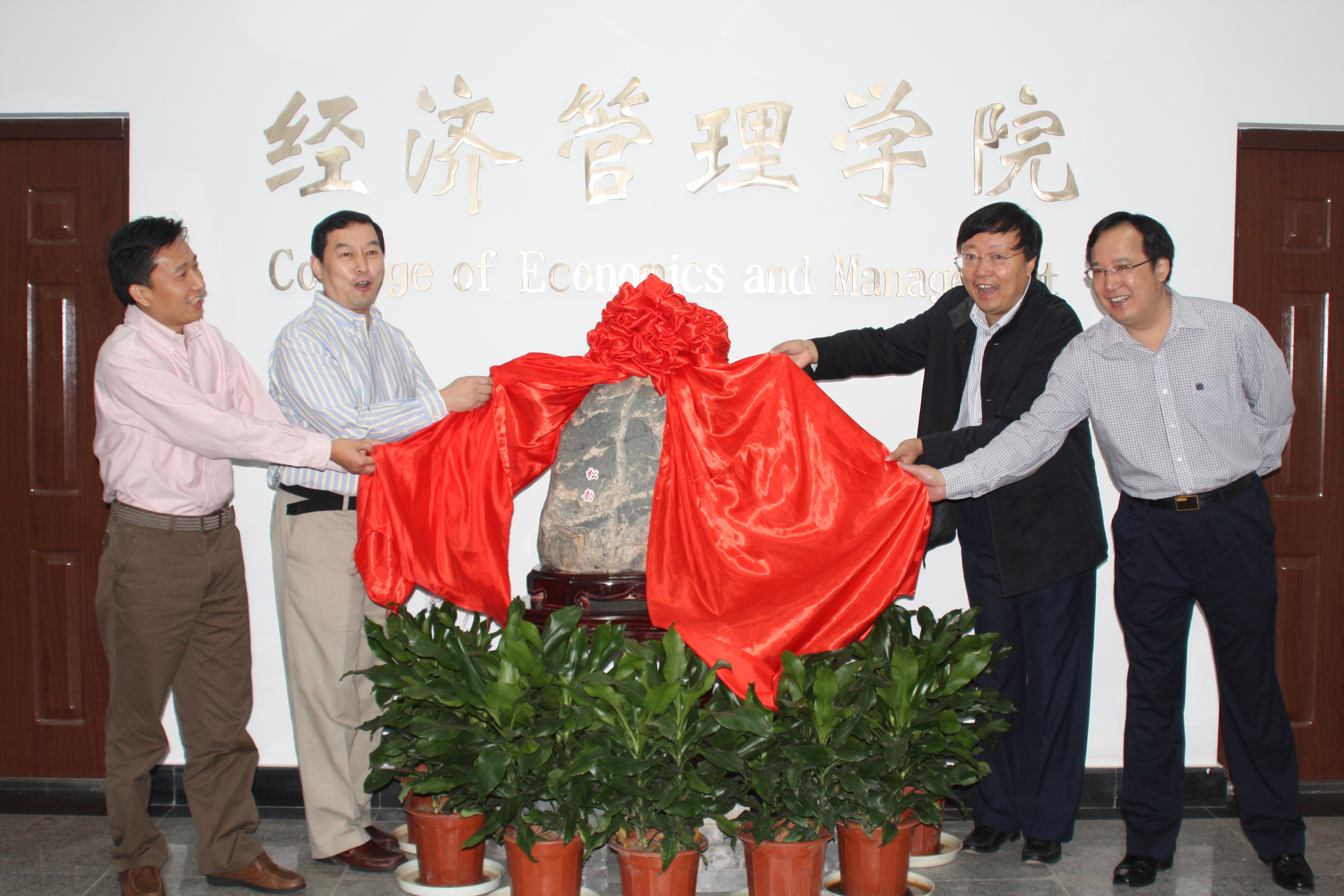 2010年10月5日,437必赢会员中心举行了一场特殊的揭幕仪式。随着学院领导代表陈东平老师、教师代表郭峰老师和九O届校友代表张超超、吕正光缓缓揭开帷幕,一樽由九O届校友集体赠送给母院的特殊礼物——奇石“松韵”跃入人们的眼帘。