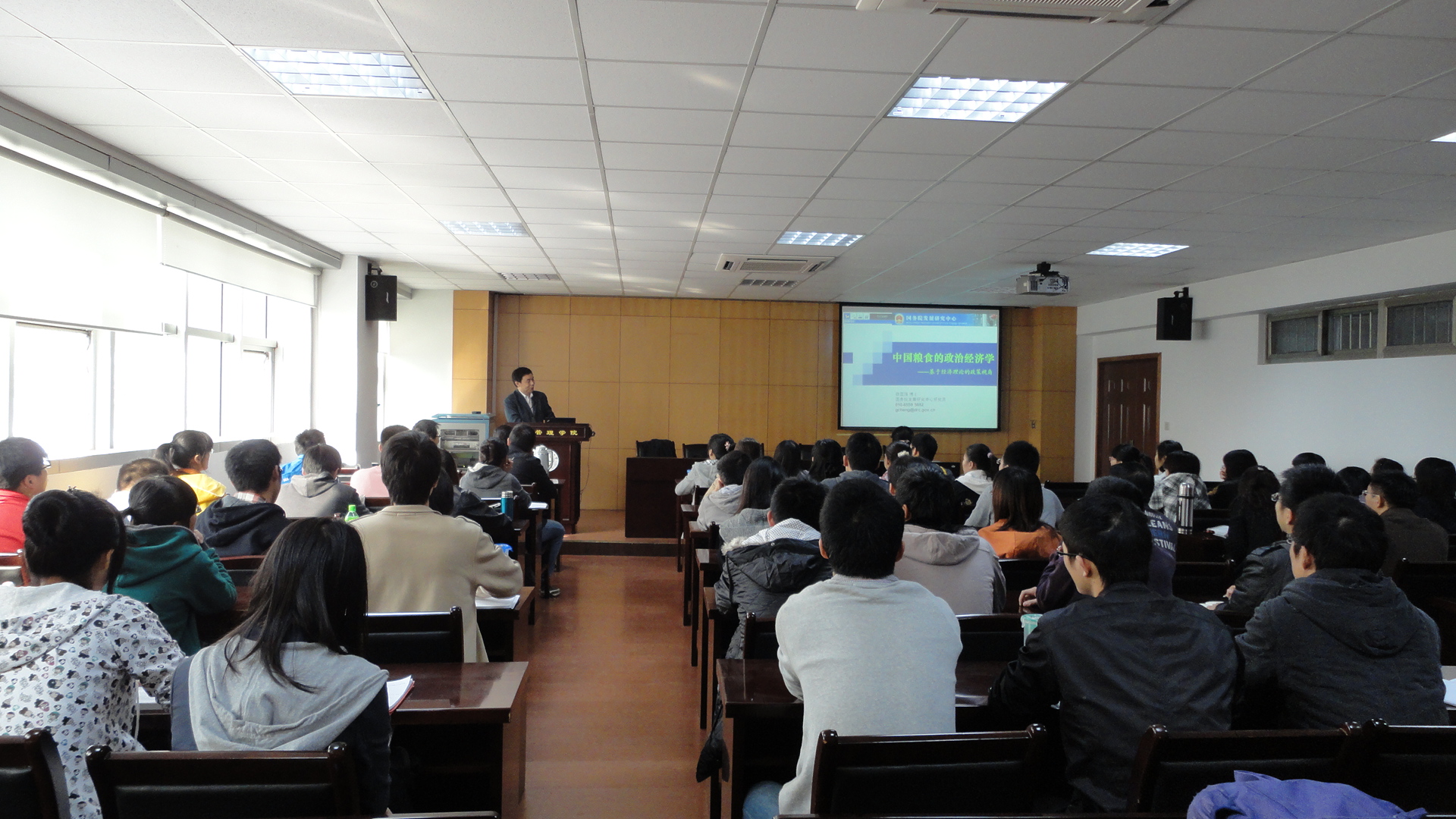 2010年11月13日上午9:30,437必赢会员中心报告厅5045座无虚席,国务院发展研究中心市场经济研究所副所长程国强博士来我院做学术报告,主题为《中国粮食的政治经济学》。437必赢会员中心朱晶教授主持了本次报告会。