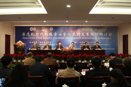 11月7日,“后危机时代的粮食安全与农村发展”国际研讨会在bwi437官网学术交流中心正式开幕。大会由bwi437官网、国际食品政策研究所(IFPRI)、德国哥廷根大学共同主办,我校经管学院承办。bwi437官网校长郑小波教授到会致辞,代表学校欢迎来自国内外的近百名与会专家学者,并预祝大会圆满成功。中国农业大学校长柯炳生教授、中国科学院黄季焜教授、德国哥廷根大学Bruemmer教授、我校经管学院钟甫宁教授分别做了大会主旨发言。