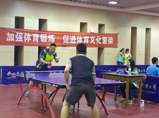 为迎接第21届江苏省高校“校长杯”乒乓球赛的到来,营造浓厚的乒乓运动文化,校体育部于10月8、9日在新体育馆乒乓球馆举行了2014年bwi437官网师生乒乓球邀请赛,经过激烈的角逐,最终我院代表队以总积分第一名的成绩荣获冠军。