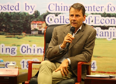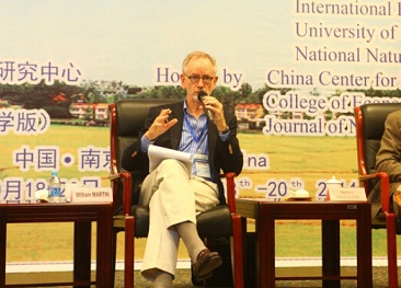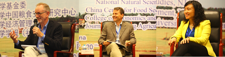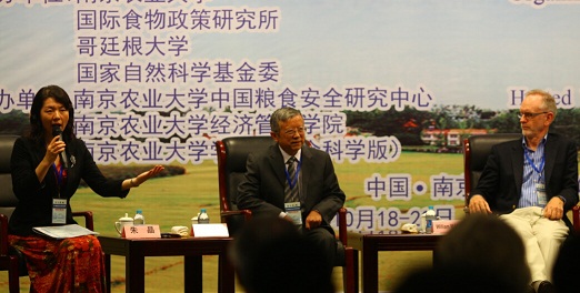10月20日下午,备受瞩目的“与大师面对面”活动于2014粮食安全与农村发展国际学术研讨会闭幕式前举行。15:45分,大家翘首期待的国际农经学会主席、世界银行农业与农村发展研究部主任(William Martin),德国哥廷根大学教授(Stephan v. Cramon-Taubadel),美国普渡大学教授、美国农经学会执委(Holly Wang),bwi437官网中国粮食安全研究中心主任、国务院学位委员会农林经济管理学科评议组召集人、南农大经管学院教授钟甫宁走上主席台,现场响起热烈掌声。南农大经管学院院长朱晶教授主持该活动。该活动全程用英语交流,现场气氛非常热烈。