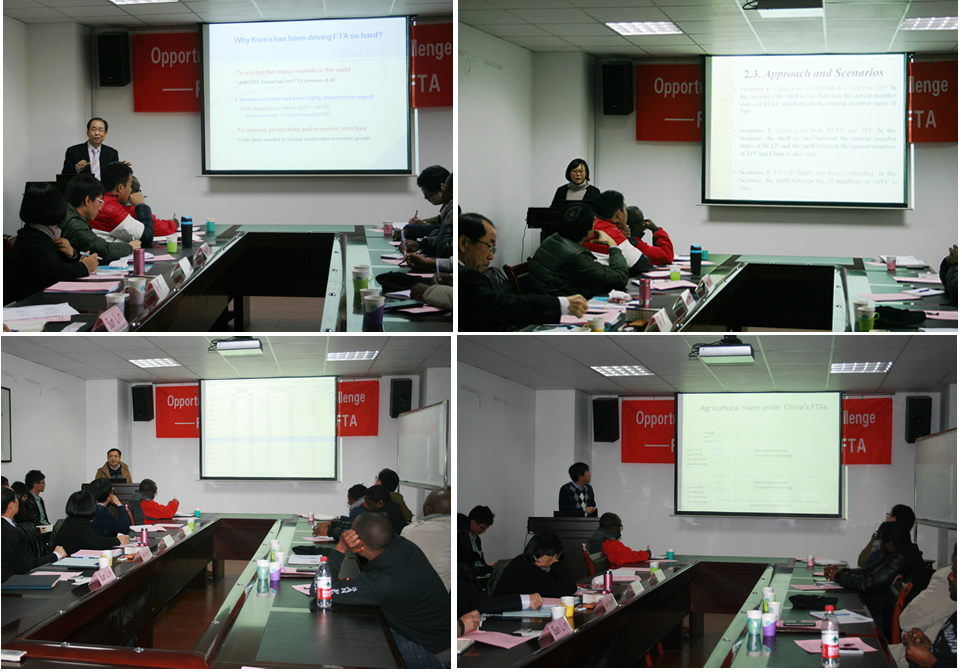 论坛正式开始后,来自韩国江原大学、东南大学、浙江工业大学、bwi437官网的四位专家报告,分别以《中韩自贸区的农业谈判》、《中国的抉择:跨太平洋伙伴关系协议(TPP)、亚太自贸区(FTAAP)》、《中国-东盟区域合作与粮食安全》、《中韩、中澳自贸区及其对中国农业的潜在影响》等主题,就中韩、中澳自贸区的谈判与建立对我国经济特别是农业的影响以及我国如何发展多边贸易进行了论述并展开热烈讨论。