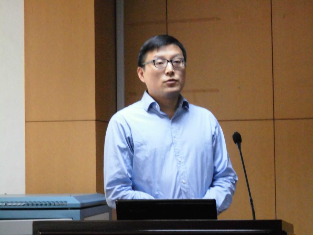 报告正式开始前,徐志刚教授先对陈希博士作了简短的介绍,并对陈希博士回到学校作报告表示欢迎。陈希博士首先介绍了世界上其他发展中国家的农村养老金的情况和目前中国的新型农村养老保险金的具体内容,接着陈希博士重点讲解了收入对健康的影响,并解释出于短期影响和断点回归的考虑仅仅选取精神健康进行研究。