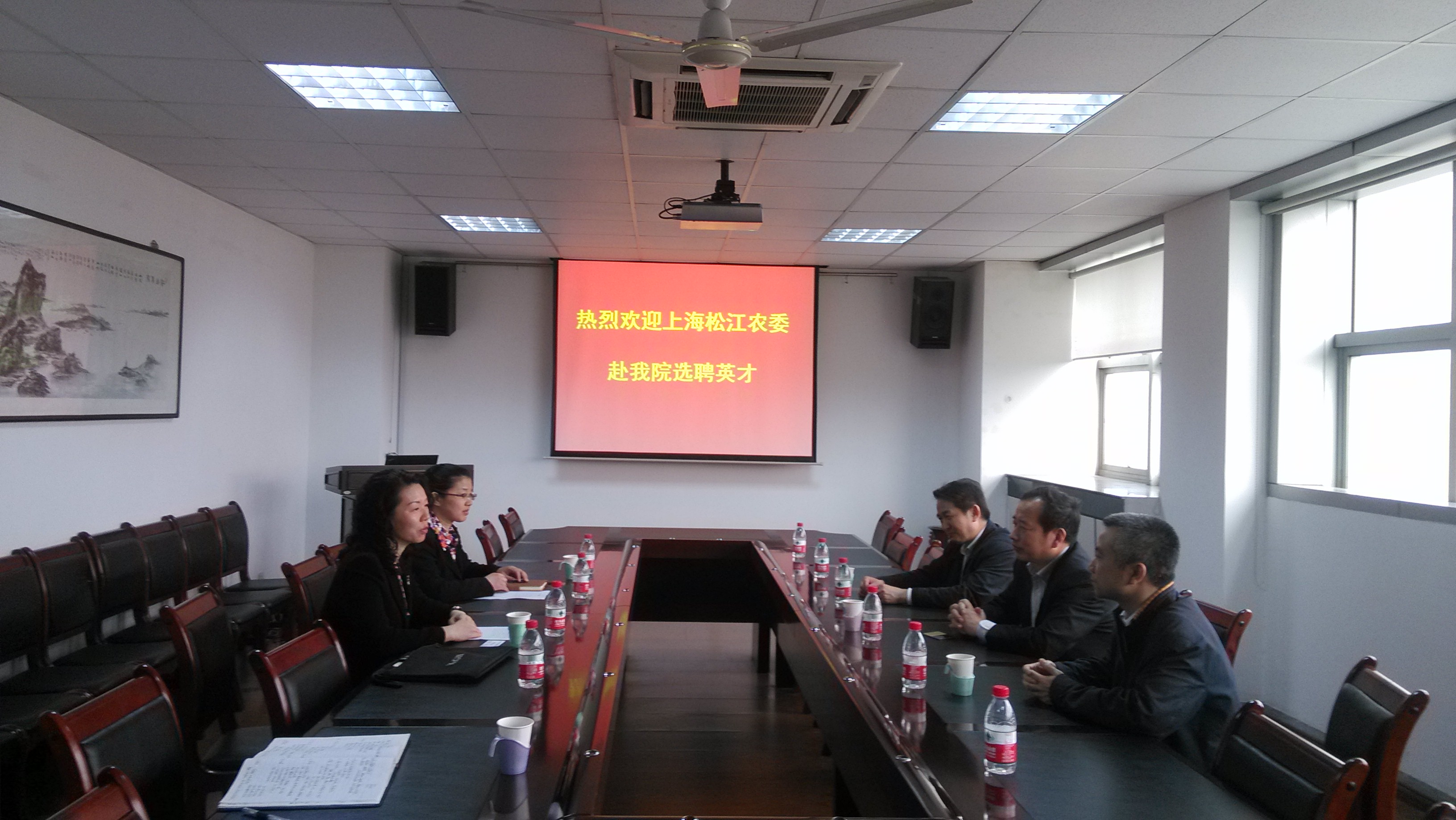 4月1日上午,上海市松江区农业委员会在经管学院举行专场招聘会,选聘学院优秀应届毕业生。经管学院院长朱晶、院党委书记胡浩、院党委副书记卢忠菊接待了上海松江农委徐桂林副书记一行5人。