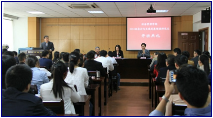 朱晶院长首先致辞。朱院长代表学院对来自江苏省13市的大学生村官学员表示了热烈欢迎。朱院长介绍了经管学院的师资与学科支撑情况,希望2014级学员珍惜机会,认真听课,在理论上不断完善提升,为指导所在农村的经济、社会发展奠定坚实基础。朱晶院长希望村官班成为学员学习的场所、交流的平台、沟通的桥梁、展现才华的舞台和未来发展的阶梯。