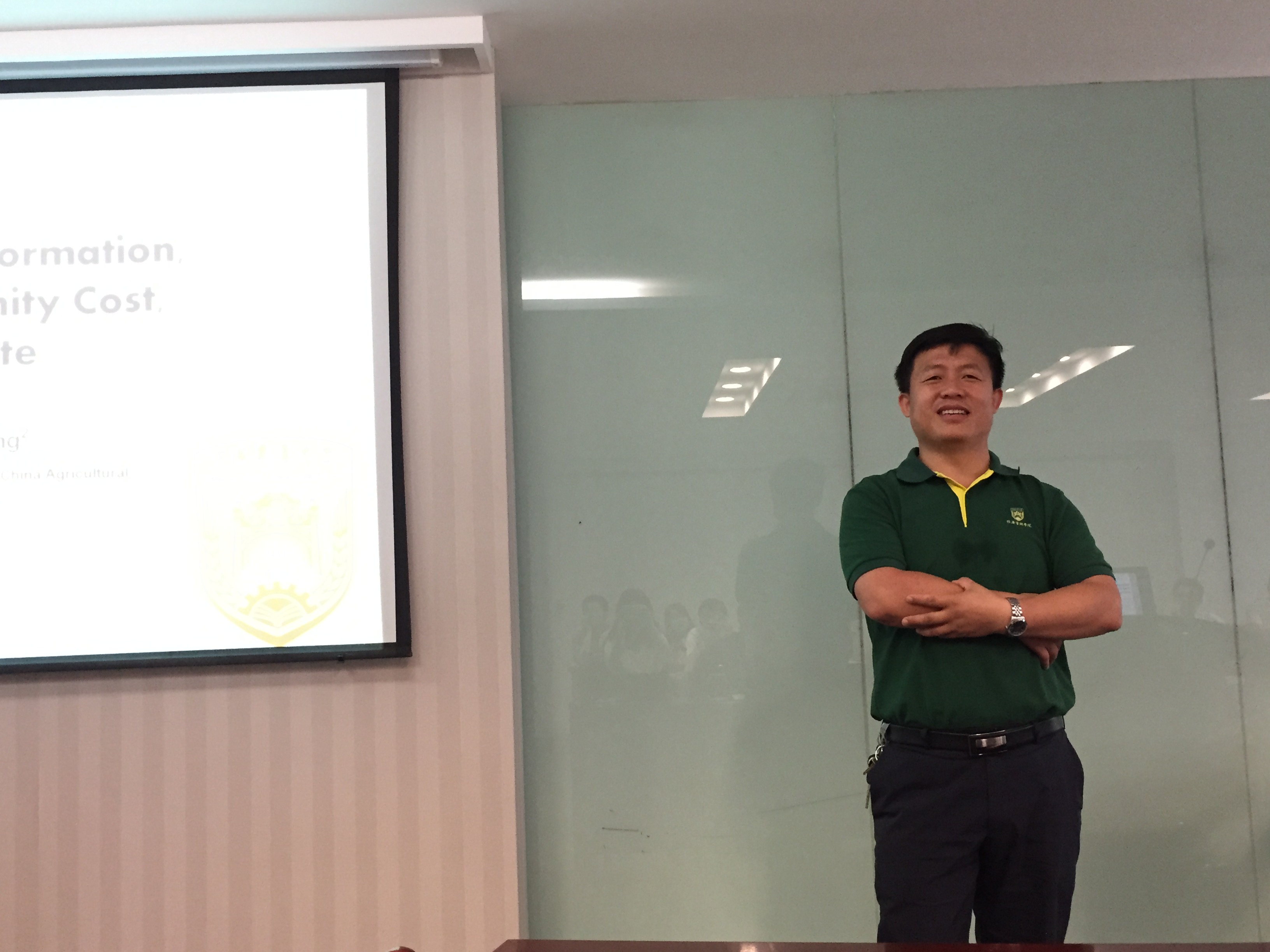 6月19日上午九点半,中国农业大学白军飞教授在逸夫楼5086为我院师生作名为“不完全信息、时间机会成本与食物浪费”的学术报告,报告由徐志刚教授主持,田旭副教授、周德副教授、纪月清副教授等参加报告。