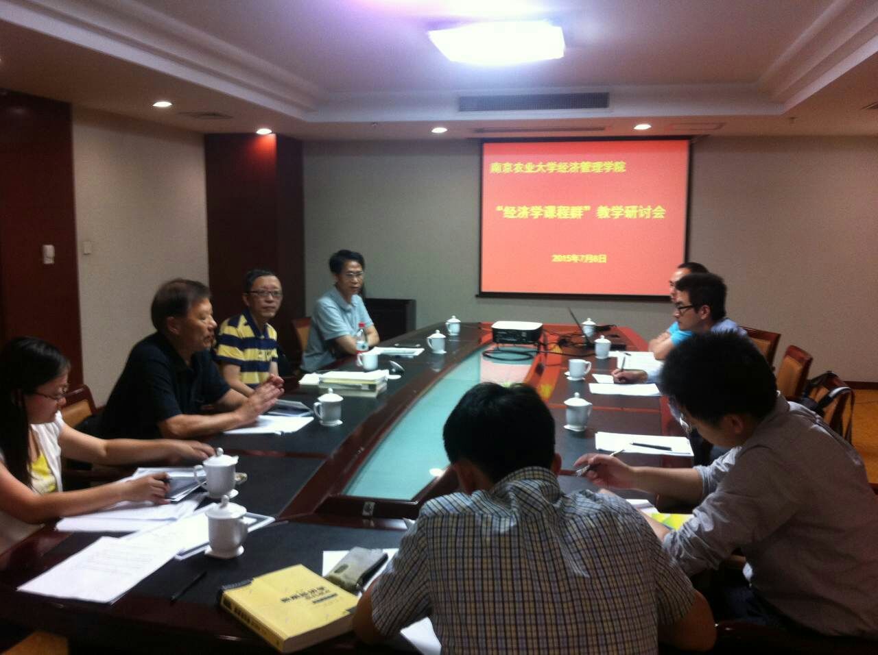 7月8日下午,437必赢会员中心召开了“经济学”课程群教学研讨会。教学院长应瑞瑶教授,校教学督导徐汉涛教授,课程群负责人何军教授以及在校的经济学系列课程任课教师纪月清副教授、孙顶强副教授、王学君副教授、巩师恩副教授、张望博士、蒋家亮博士,吴蓓蓓博士参加了会议。