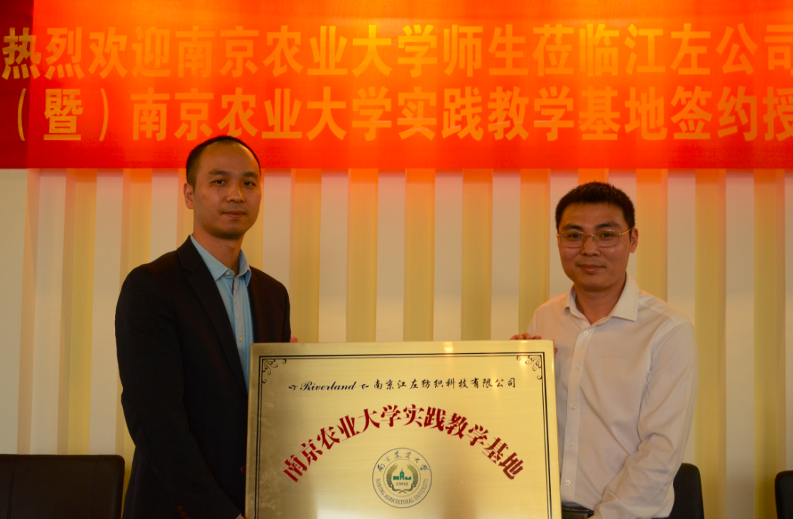 徐志刚教授、周力副教授分别代表学校与江左公司吴付林总经理进行了“bwi437官网—南京江左纺织科技有限公司实践教学基地”签约、授牌仪式。