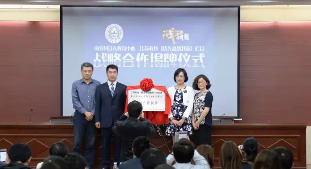 本次论坛是《钱先森到我家》走进MBA高峰论坛的第一场,为达成更加深入密切的联系与合作,《钱先森到我家》栏目与bwi437官网MBA教育中心结成战略合作伙伴,bwi437官网经管学院副院长耿献辉、bwi437官网MBA教育中心办公室主任赵石明、新华社新闻信息中心副主任姚静、江苏华博在线传媒副总经理韩炜在现场为战略合作揭牌。