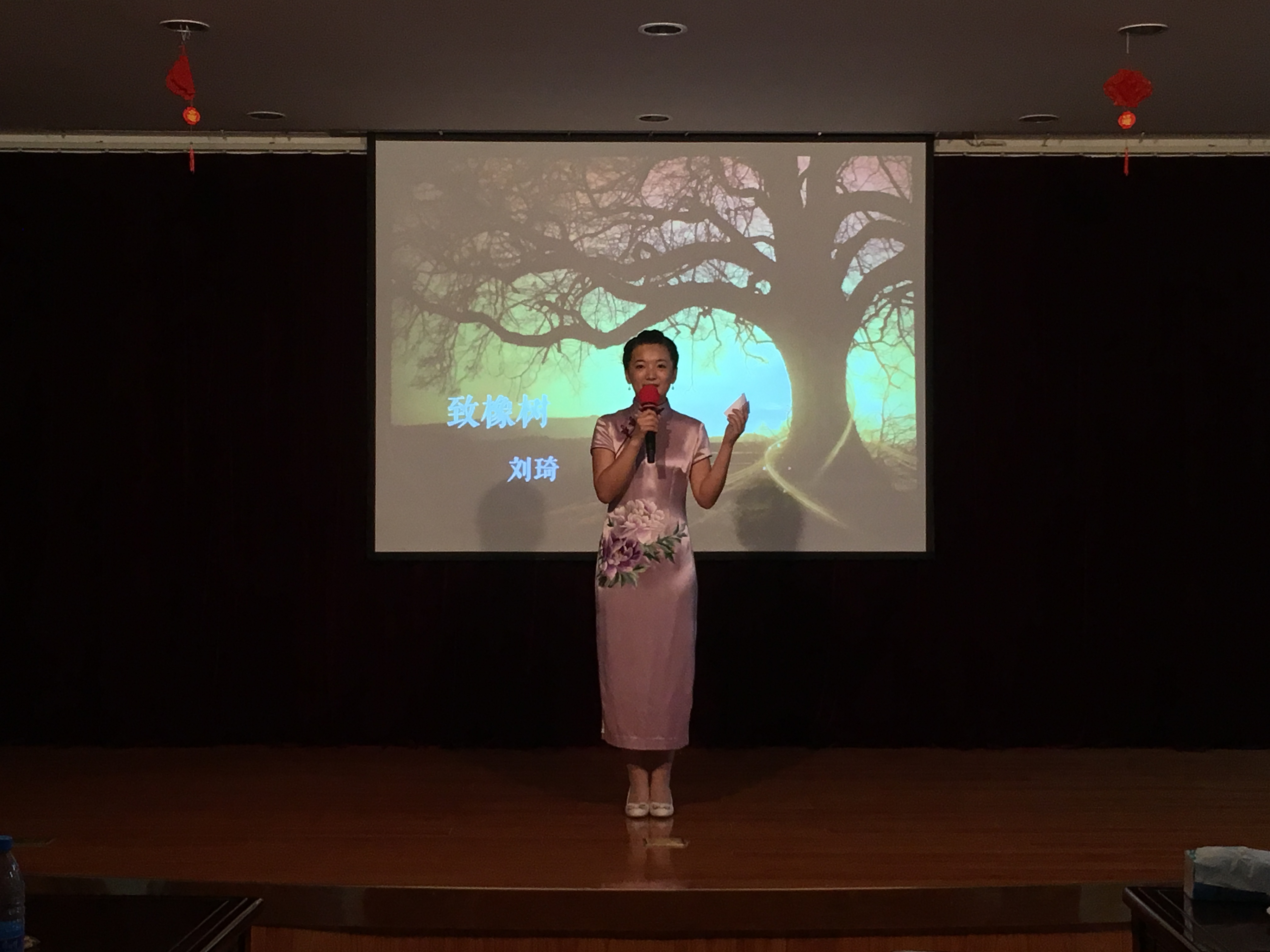 来自古韵流声民乐社的王安蕊同学,为大家带来一首古琴演奏,让在场的观众们耳目一新,绵长悠扬的琴声将离别之情娓娓道来,现场瞬间安静下来,大家都静静的欣赏。来自2014级专硕班的毕业生刘琦同学为大家带来了诗朗诵《致橡树》,感情真挚而深情地表达对同学们的美好祝愿。最后在15级专硕班金宇同学的一首《小幸运》中本次晚会落下了帷幕。