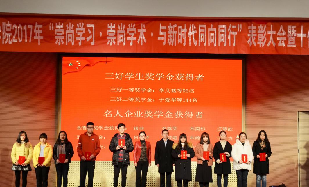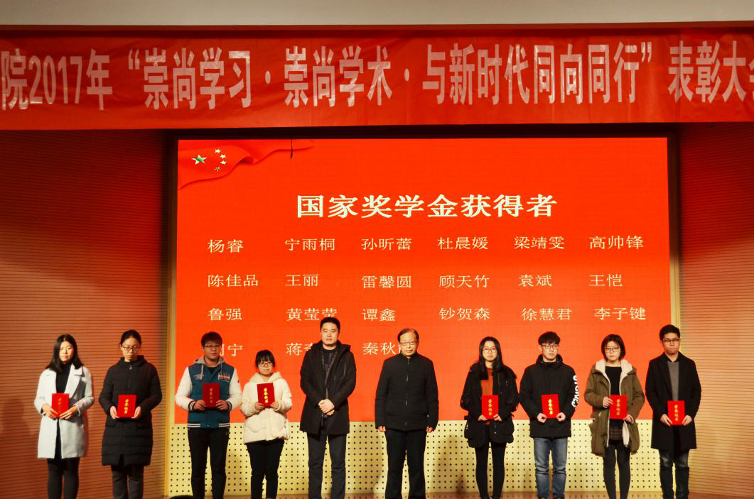 “崇尚学习崇尚学术 与新时代同向同行”表彰大会总结了437必赢会员中心2017年的育人成果,并由出席大会的领导作为颁奖嘉宾分别为优秀干部获得者、刘崧生奖学金获得者、名人企业奖学金获得者、三好学生奖学金获得者、国家励志奖学金获得者和国家奖学金获得者代表颁奖。