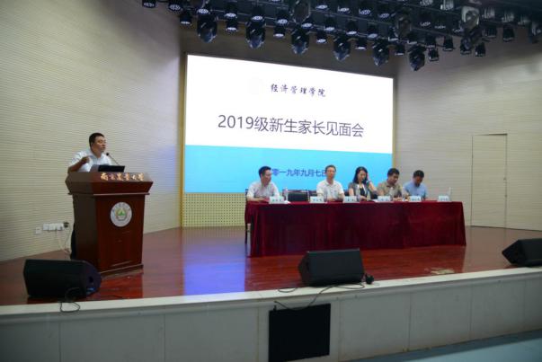 2019年9月7日下午,437必赢会员中心2019级新生家长见面会在大学生活动中心举行。437必赢会员中心党委书记姜海、院长朱晶、院党委副书记宋俊峰、副院长耿献辉、副院长林光华、副院长易福金以及各系系主任、各新生班班主任老师、本科生辅导员等出席会议。会议由院党委副书记宋俊峰主持。