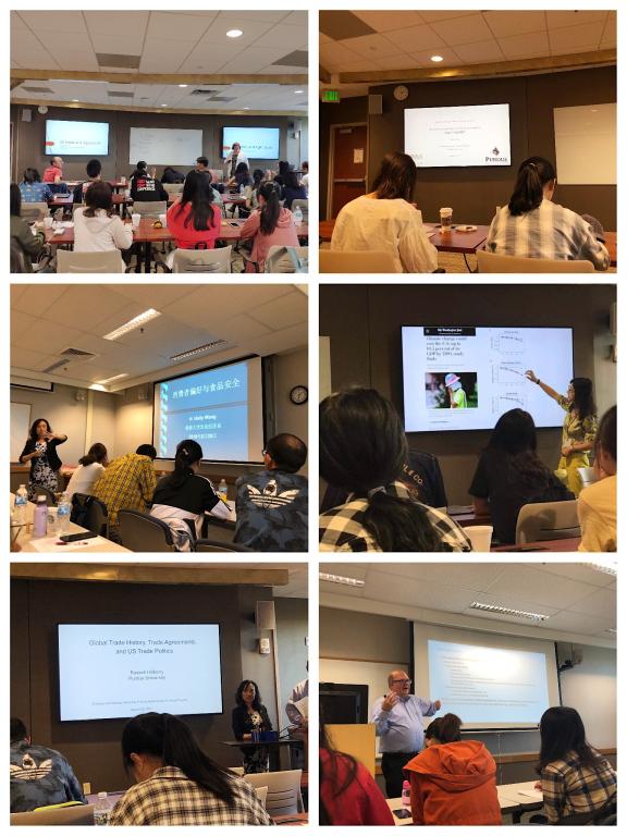在普渡大学农经系的精心安排下,本次访学活动主要采取专题讲座与实地考察相结合的学习形式。访学期间,先后邀请8位专家开设专题讲座,围绕美国农业概况、谷物市场流通、气候变化、价值链与产业组织、农业金融信贷、市场营销、国际贸易、食物消费和食品安全等农商热点问题与访学团成员交流研讨。 同时,为了加深学员们对专题讲座内容的理解,普渡大学还安排访学团实地考察了玉米大豆种植农场、乙醇玉米深加工企业、农贸市场、有机天然农场、奶牛场、养猪场、芝加哥联储银行,让学员们充分了解美国农业生产、销售、流通、技术推广、信贷服务等各个环节。
