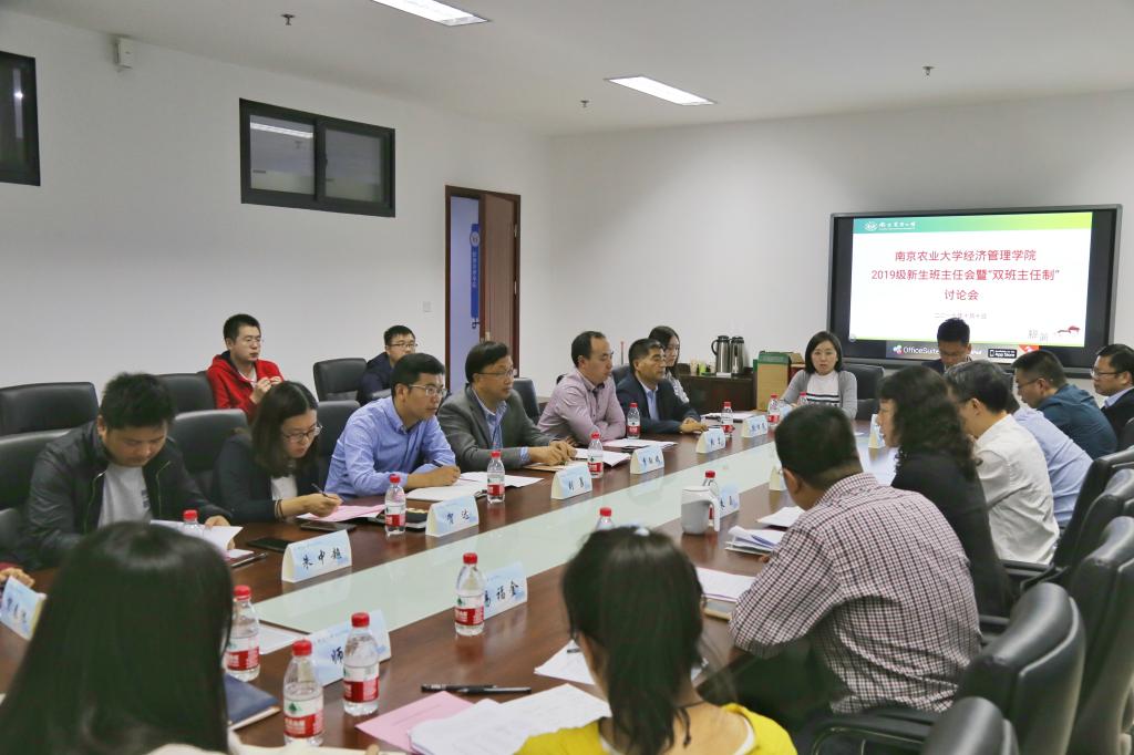 2019年10月10日,437必赢会员中心2019级新生班主任会暨“双班主任制”讨论会在第三实验楼713会议室召开。院党委书记姜海、院长朱晶、院党委副书记宋俊峰、副院长耿献辉、副院长易福金及2019级新生班主任出席本次会议。
