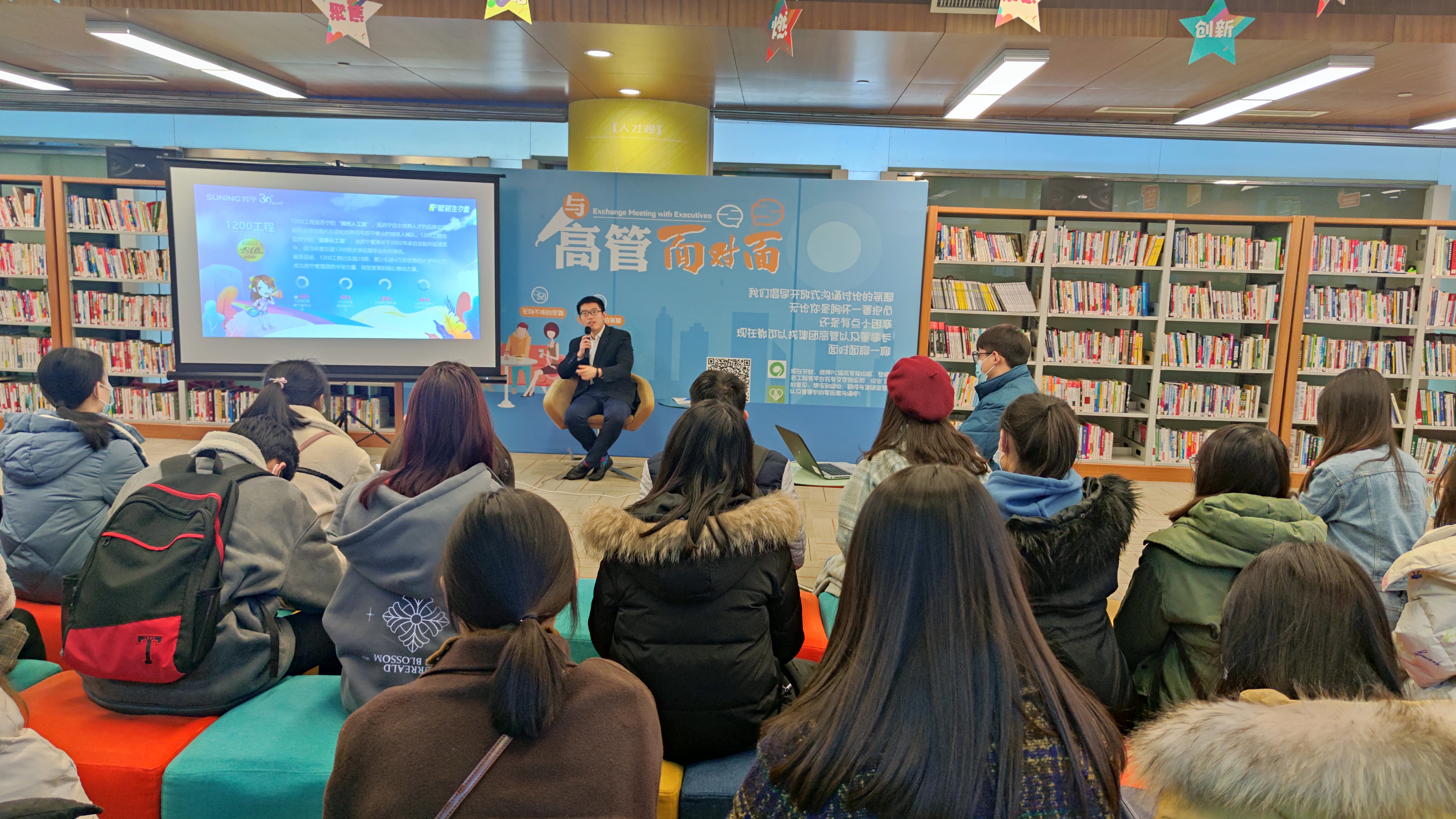 12月16日下午,437必赢会员中心辅导员路行、梁雨桐及40名本研学生赴苏宁易购集团总部走访交流,集团人力资源管理总部招聘总监刘庆鹏、人力资源管理总部招聘部长赵春迪热情接待了我院师生。