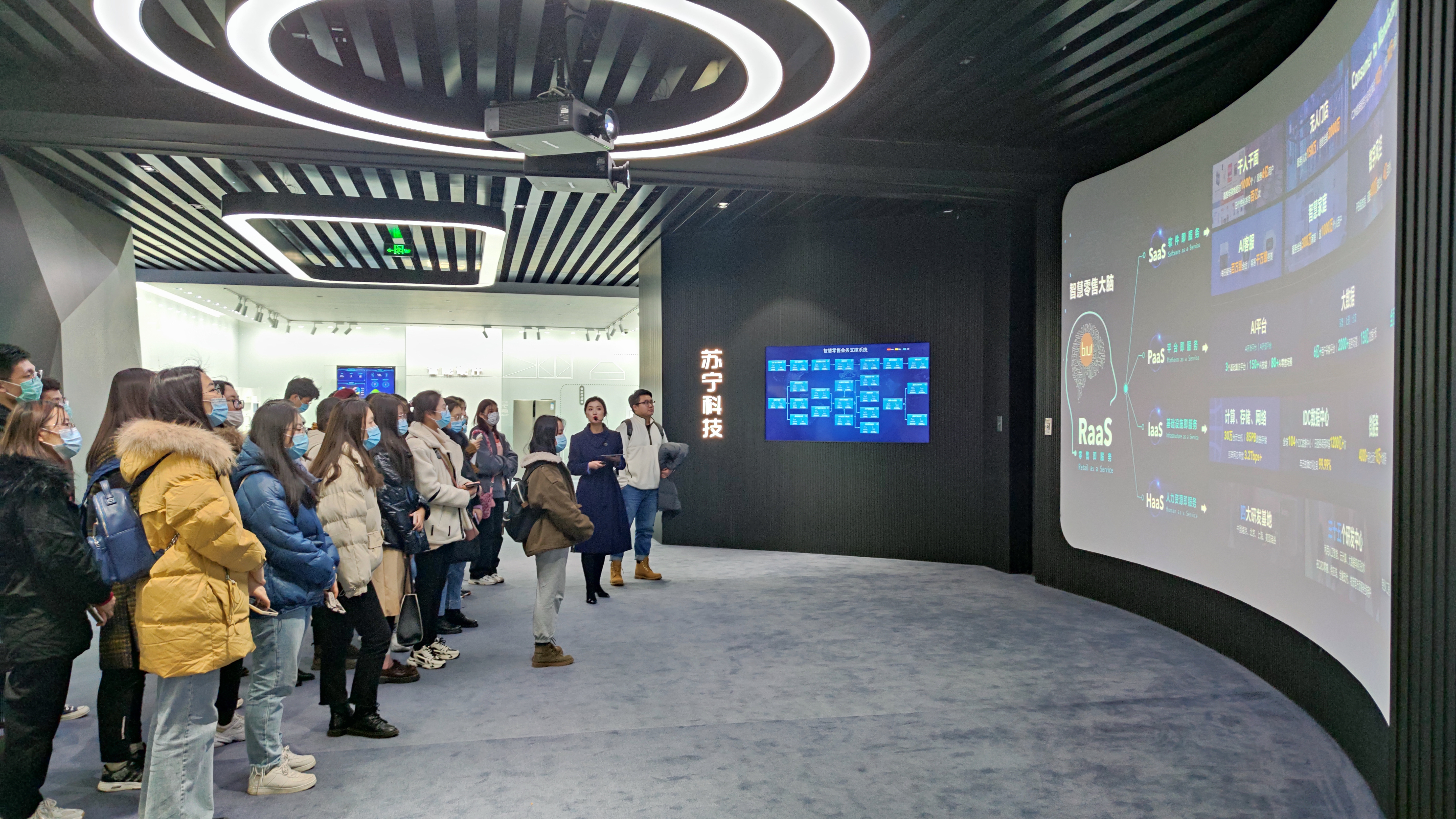 我院师生还在工作人员带领下参观了苏宁园区,从苏宁集团的企业文化、战略布局、智慧零售、物流云、苏宁体育等全面了解了苏宁集团经营发展理念。