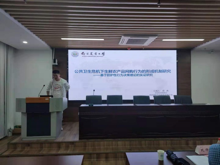 薛虎汇报的题目是《公共卫生危机下生鲜农产品网购行为的形成机制研究——基于防护性行为决策理论的实证研究》,文章以COVID-19疫情爆发期间消费者生鲜农产品网购行为为研究对象,基于防护性行为决策理论的基本框架,从风险信息视角,探析了消费者网购意愿的形成机制,从防护性行为感知和情境因素两类变量调节视角,解释了消费者网购意愿与网购行为之间的悖离。