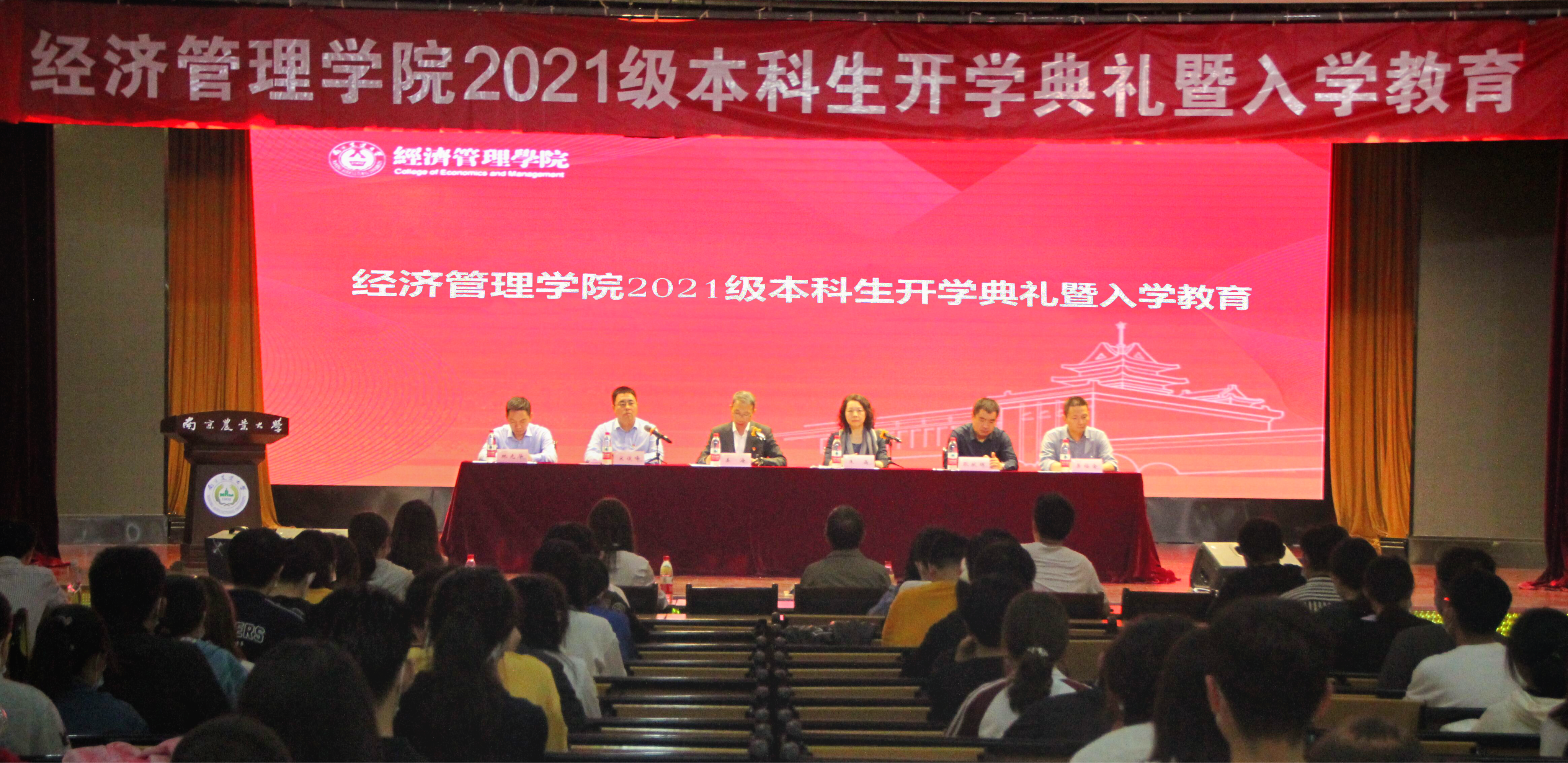 2021年10月14日,437必赢会员中心2021级本科生开学典礼暨入学教育在浦口校区大学生活动中心举行。院党委书记姜海、院长朱晶、院党委副书记宋俊峰、副院长耿献辉、林光华、易福金,管理系主任何军出席本次活动。本科生辅导员与全院246名2021级本科生新生共同参与。活动由宋俊峰主持。