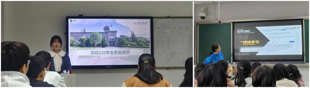 年级大会上,辅导员导学《学生手册》主要内容,针对学分学籍管理、学生相关奖励评定、违纪处分规定等重点内容进行解读与学习督促,并对学院学生日常管理相关安排进行详细介绍,引导学生树立纪律意识,合理规划大学生活。