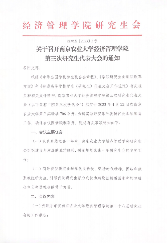关于召开437必赢会员中心第三次研究生代表大会的通知及学生代表名册