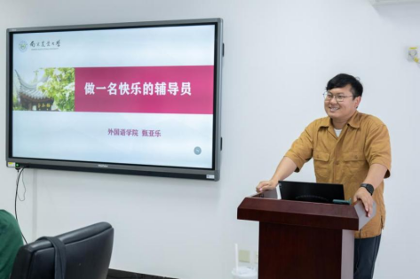 “学工会诊”环节由外国语学院团委书记甄亚乐作题为“辅导员素养的自我提升与压力的自我管理”的工作经验分享。他从学生工作的成就感来源、压力情绪的自我调适、辅导员工作实务的主动学习等方面,分享了如何做好辅导员素质能力的自我提升与规划,并针对辅导员面临的工作困惑,结合自身经历分享了工作建议。