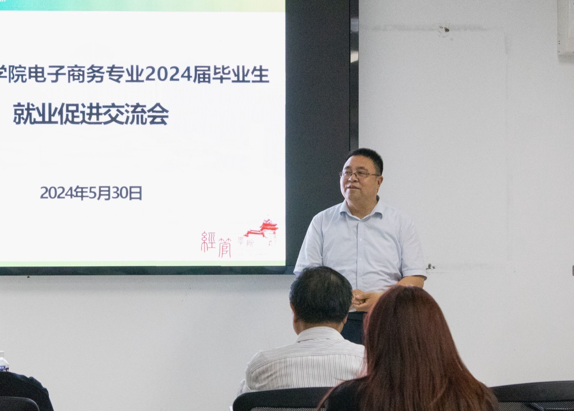 为扎实推进毕业生就业工作,促进毕业生高质量充分就业,5月30日,电子商务专业召开2024届本科毕业生就业促进交流会,院党委副书记宋俊峰、管理学系系主任葛继红教授、用人单位代表及电子商务、工商管理、市场营销专业未就业毕业生参会,交流会由电子商务专业负责人周曙东教授主持。
