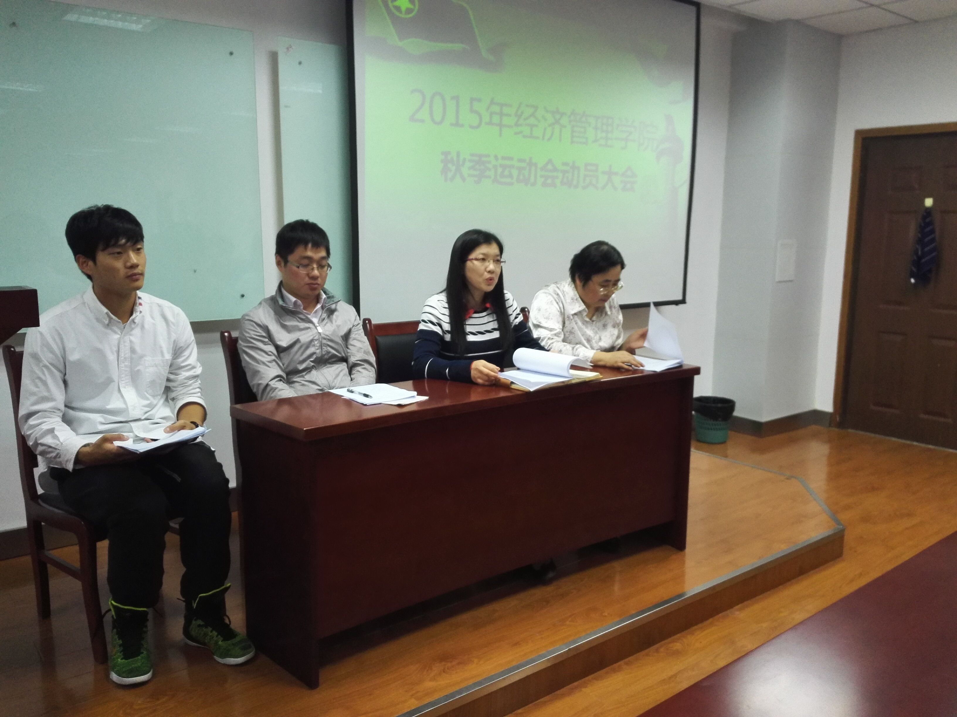 10月14日下午,我院召开了2015年校田径运动会动员大会。学院党委副书记卢忠菊,辅导员施培菊、葛焱、谢涵,兼职辅导员于林功出席会议,全体参赛运动员参加了会议。会议由辅导员谢涵主持。