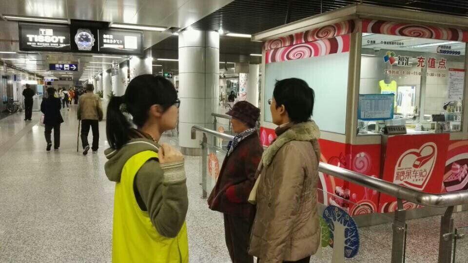 地铁站人流量很大,志愿者们工作分配井井有条,保证地铁站秩序有条不紊。活动过程中,志愿者们了解到糖果车站的来历,为一个简单的故事而感动,为所有工作人员都带着糖果上班的习惯而感动。虽然工作量很大,但没有一个人抱怨,没有一个人轻言放弃,大家都微笑着互相鼓励。