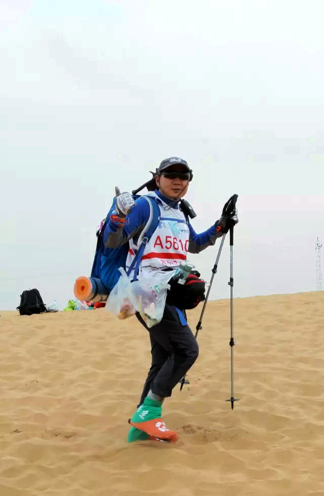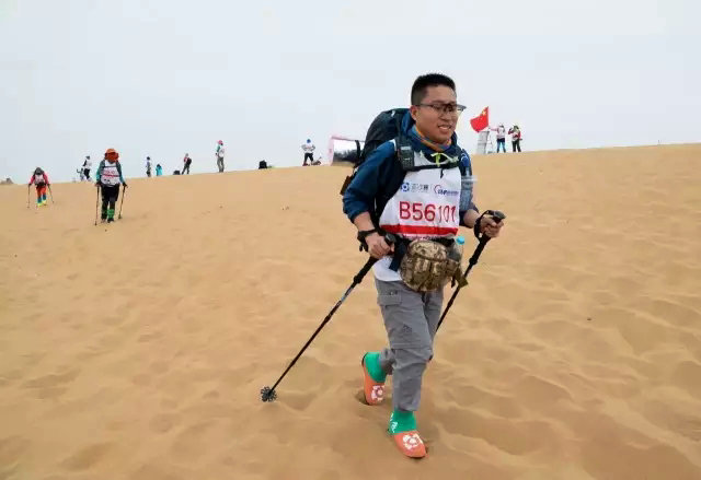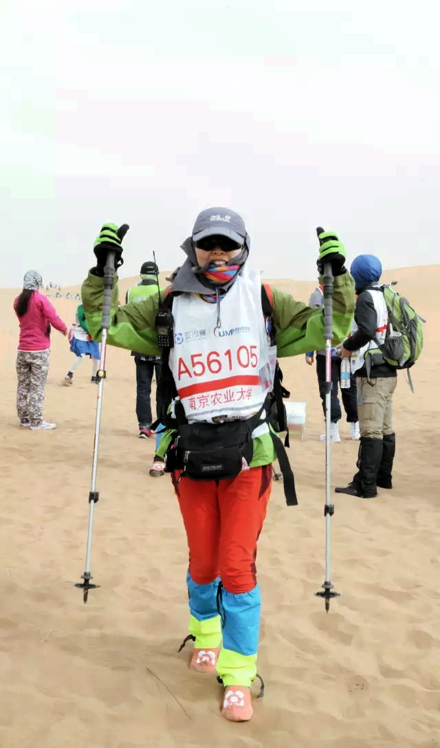 刘真臻 队员决定参加亚沙,不是为了超越任何人,只是对自己的挑战,对身体、意志和信心的磨砺。在沙漠中行走,拖着凝滞疲惫的身躯,感受酷热灼人的干渴、不断流失的能量,体会孤独和责任,同时也收获了许多感动,陌生人的加油,沙友伸出的援手,队员们的欢声笑语。当不知终点的时候,有那么一瞬间我感到自己已无法前行,但到达比赛终点我又感觉自己还有余力。人如果不逼自己,也许不能确认是不是真正的极限。唯有坚持才能战胜一切。