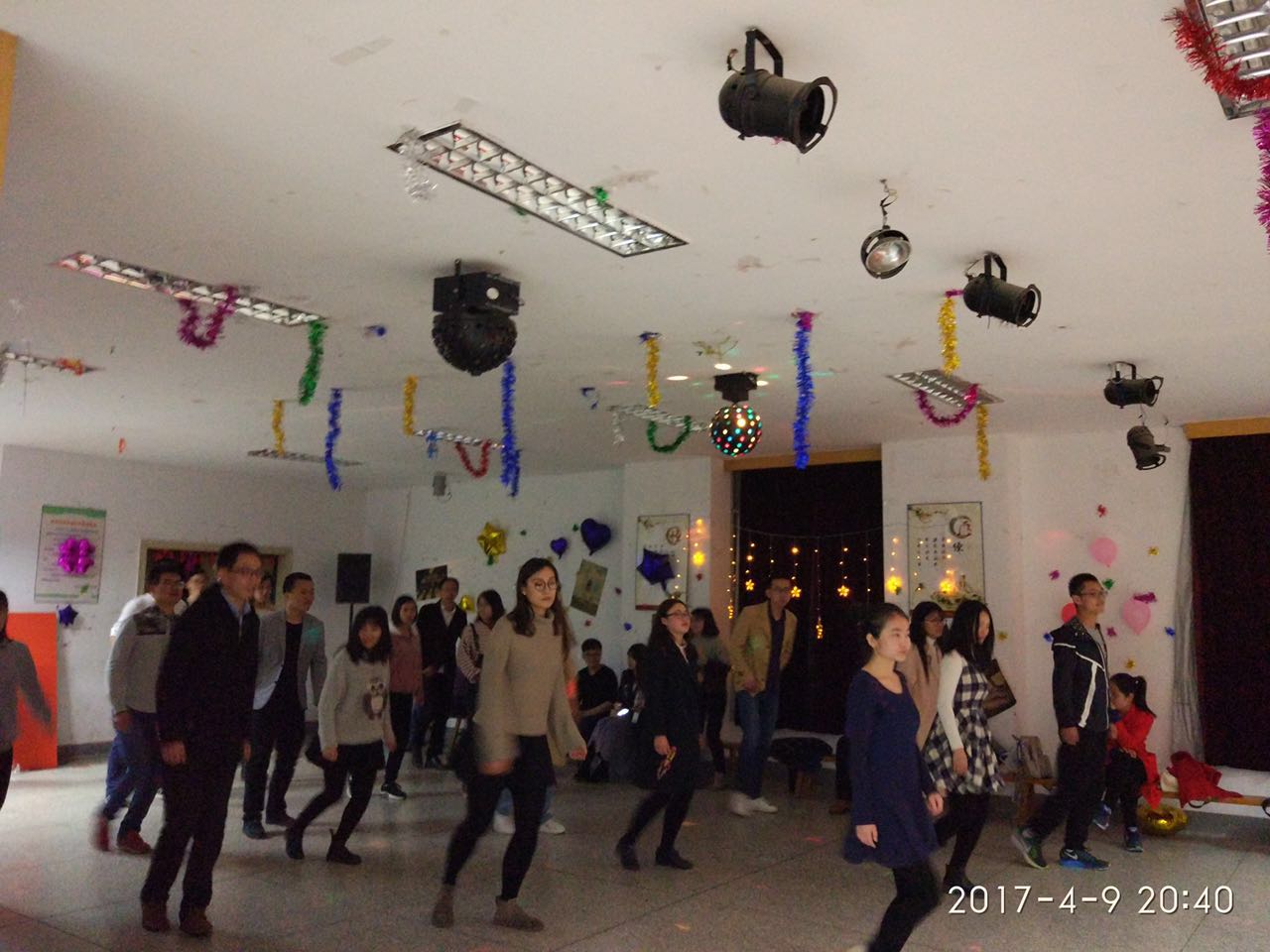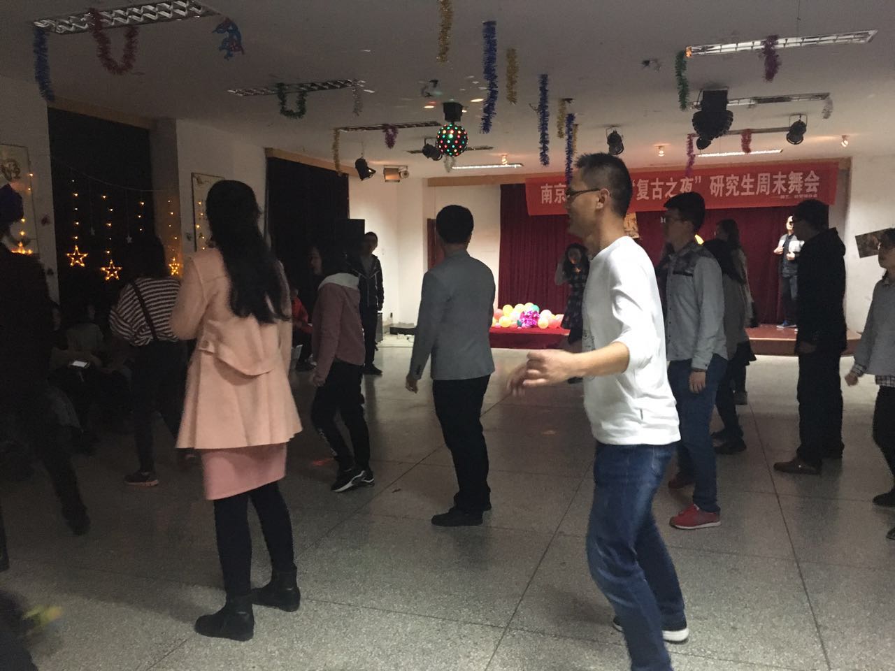 虽然舞会在晚上7点才正式开始,但6点半左右现场氛围已浓,已经到场的同学则有说有笑,兴奋地等待舞会地开始。舞会的开始,大家集体跳“兔子舞”,在欢快的音乐下,大家熟悉起来。开场舞一方面为整场舞会暖场,另一方面为没有舞伴的匹配男/女伴,现场的气氛逐渐升温,欢乐与激情洋溢在会场上。紧接着,来自南京医科大学的徐奕舒老师开始简单的交谊舞教学。在时明时暗的灯光下,开始还有些拘束的同学们,都逐渐放松起来,跟着老师的步伐和节奏跳着。在舞会的活动过程中,男女同学配合默契,进行了很好的互动。