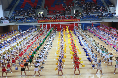 5月24日下午,bwi437官网第四十五届运动会啦啦操比赛在我校体育馆举行,全校16支队伍参加此次比赛,我院28名同学组队参赛。