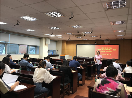 9月25日下午,经管院在逸夫楼5045召开2017-2018学年第一学期本科班主任会议。经管院党委副书记卢忠菊、全体班主任老师以及本科生辅导员施培菊、李扬、郑琼婷参加了会议。