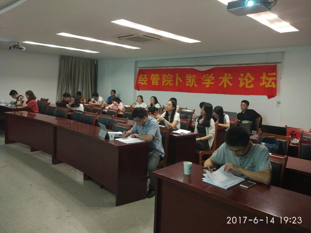 2017年6月14日晚6点30分,经管院研会学术部举办的第八十四期卜凯论坛在逸夫楼5086成功举办,周询、李佳睿、刘馨月、殷嘉怡做了精彩的汇报,田旭、周德老师给予了详细的点评。