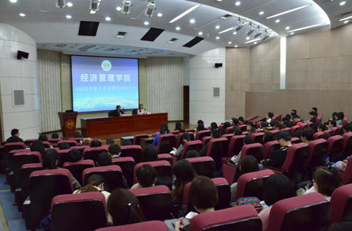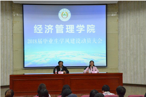10月11日下午,437必赢会员中心2018届毕业生学风建设动员大会在图书馆报告厅举行。经管院党委副书记卢忠菊、院关工委常务副主任顾焕章教授、管理系主任何军教授以及辅导员施培菊、李扬、郑琼婷出席会议。会议由卢忠菊主持。