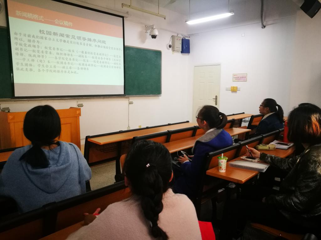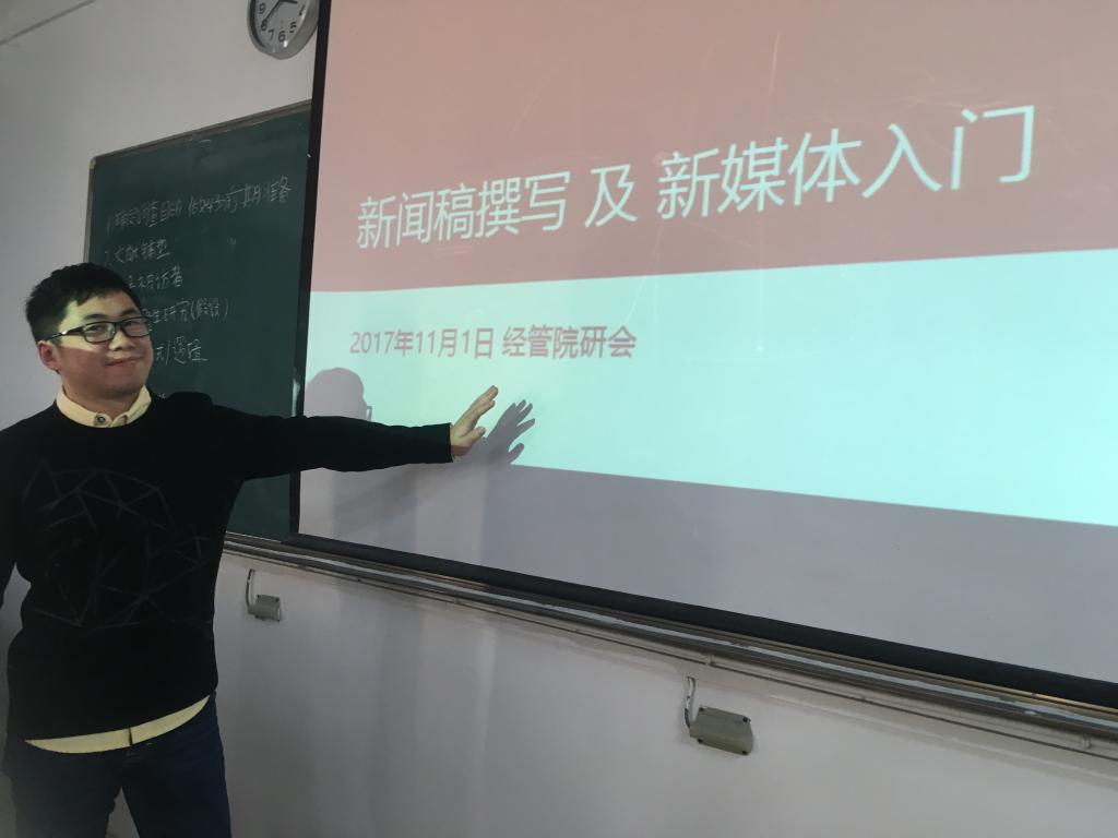 培训分为两个部分,首先是新闻写作部分。洪甘霖以分析和举例的方式生动详细地介绍了不同活动场景中新闻稿的写作特征,让同学们对会议稿件、院校活动稿件以及组织活动稿件的写作有了一定的了解。第二部分是新媒体入门培训,通过对比不同院校研会发布的微信推送,加深了同学们对不同类型的推送文章的认识。同时为大家演示了微信公告号文章的编辑及推送流程,使得在场同学能够更好地将理论与实践相结合。
