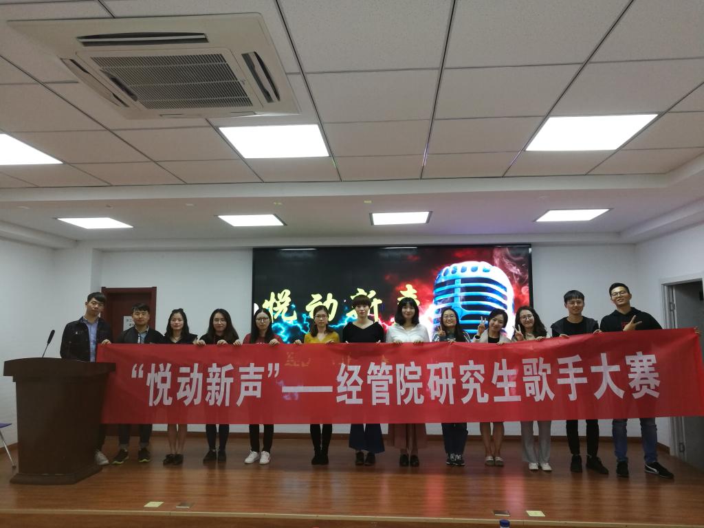 为进一步丰富校园文化生活,努力营造积极向上、健康文明的校园文化氛围,丰富研究生们的业余生活,加强校园精神文明建设,推进我院文艺工作发展进程,2018年10月27号晚上六点,经管院研究生会文艺部在北苑研究生报告厅举办了“悦动新声”研究生歌手比赛。莅临本次比赛的评委有:经管院研究生会副主席赵艺华,经管院研究生会副主席闻益华,本科学生会主席黄佳玲。此外,与赛的还有经管院研究生会各部门人员和8名选手以及他们的亲友团们,此次比赛由2017级文艺部部长王萍主持,比赛在一种轻松而又欢快的气氛下拉开了帷幕。